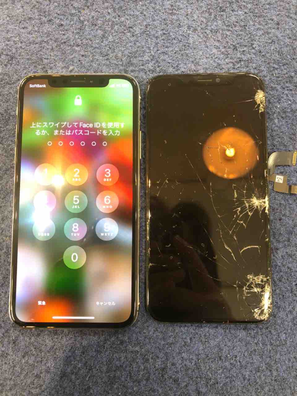 こちらはSoftBankユーザーのお客様のiPhoneXS画面割れ修理依頼