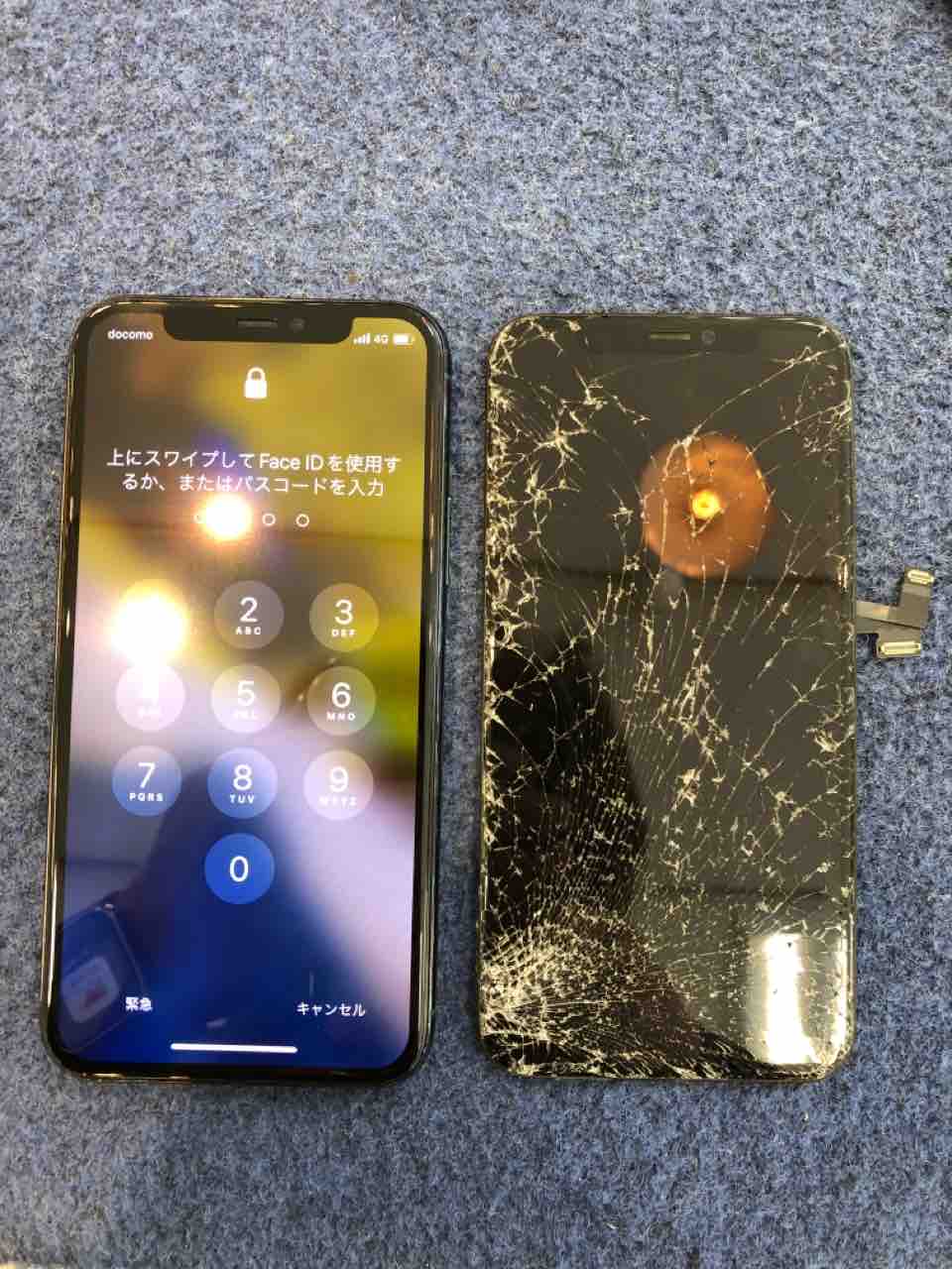 開店前からお待ち頂いておりましたdocomoユーザーのお客様のiPhone11 Proのお客様。。。落下後踏んでしまったとの事で画面がバキバキで無表示状態に。。
