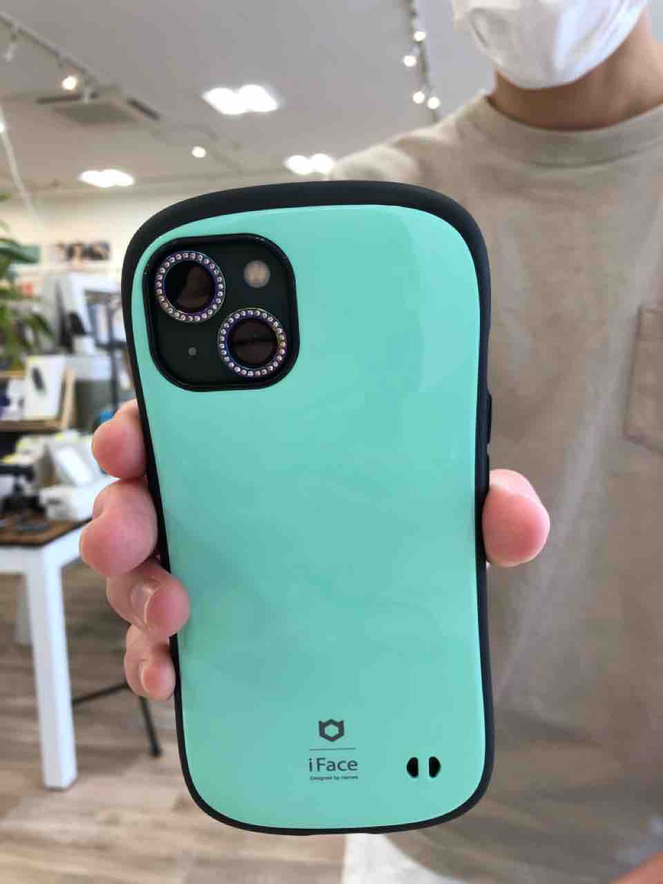 iPhoneの背面カラーに合わせてくすみシリーズのブルーをチョイス(^ ^) カメラレンズ保護もご購入で貼り付けさせて頂きました。スマホ堂阿南店のご利用ありがとうございましたm(_ _)m