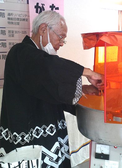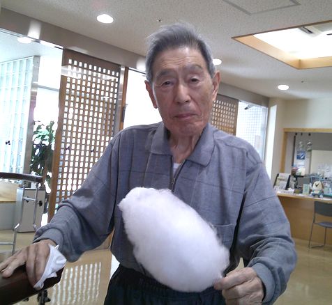 毎年恒例となりました岡坂部長の綿菓子屋さん。最初は、腕全体が綿菓子まみれになっていたのに、すっかり上手に作れるようになりました。