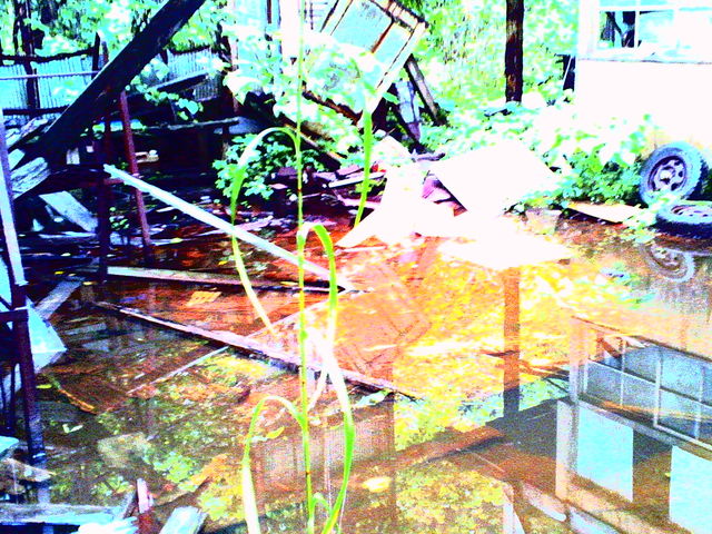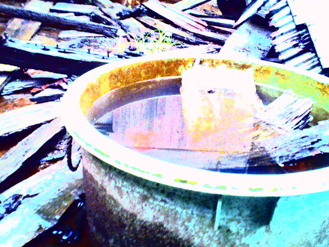 かなり水がたまってる。でも長靴はいてるからだいじょぶ。