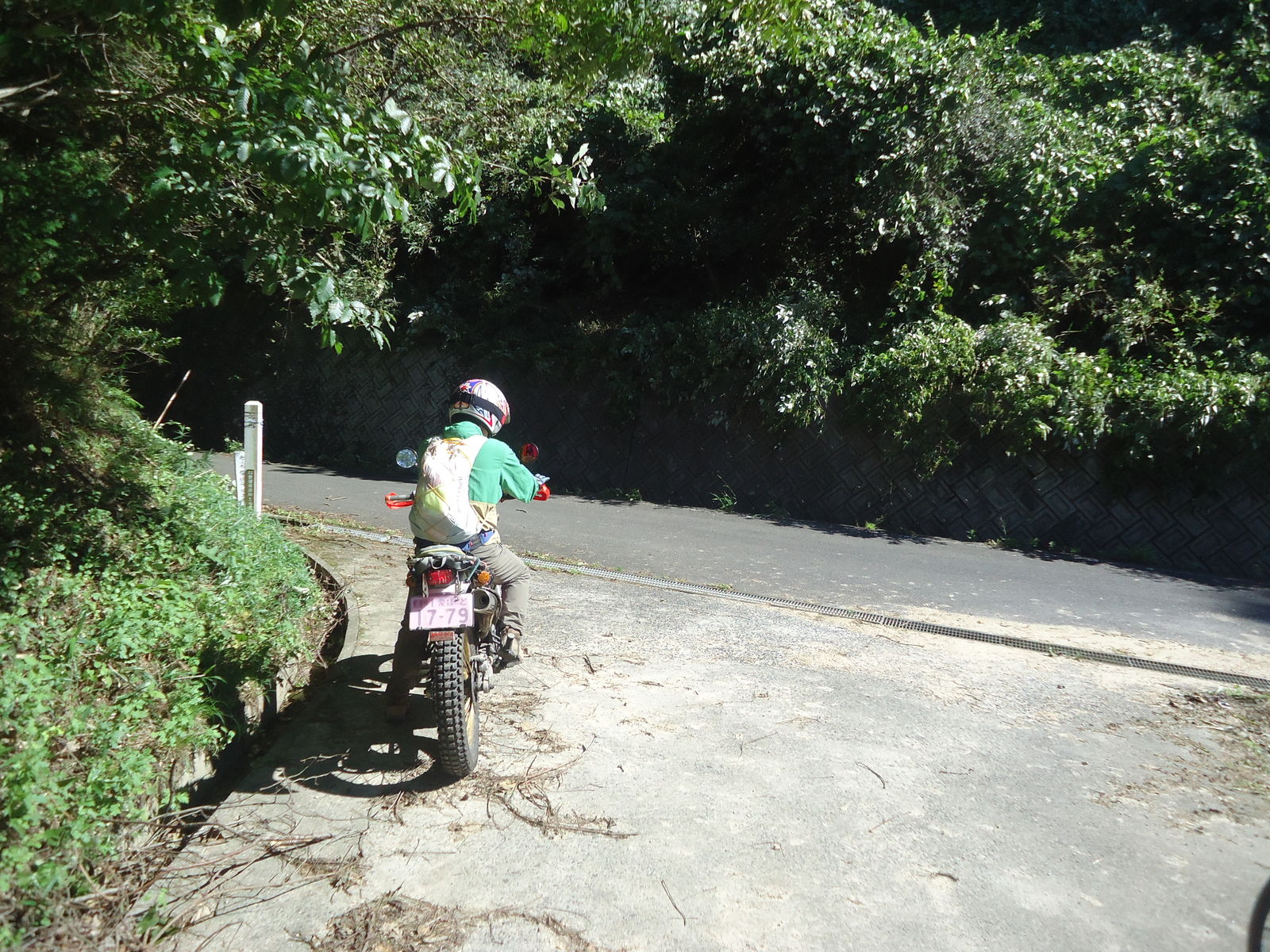 狭い道を上がっていくけど、この道も、台風の影響か?木や葉っぱが道を覆って走りにくい。。