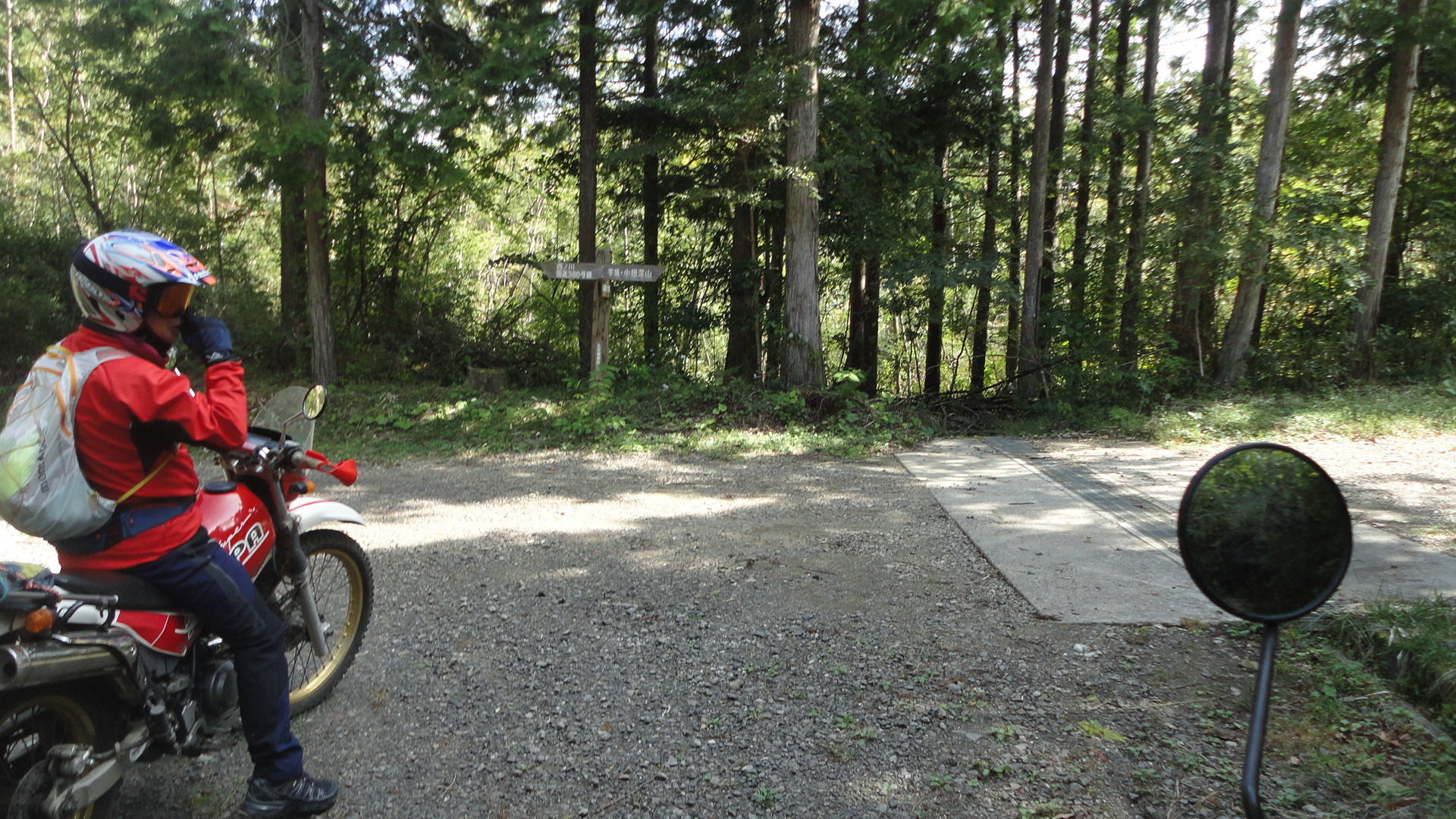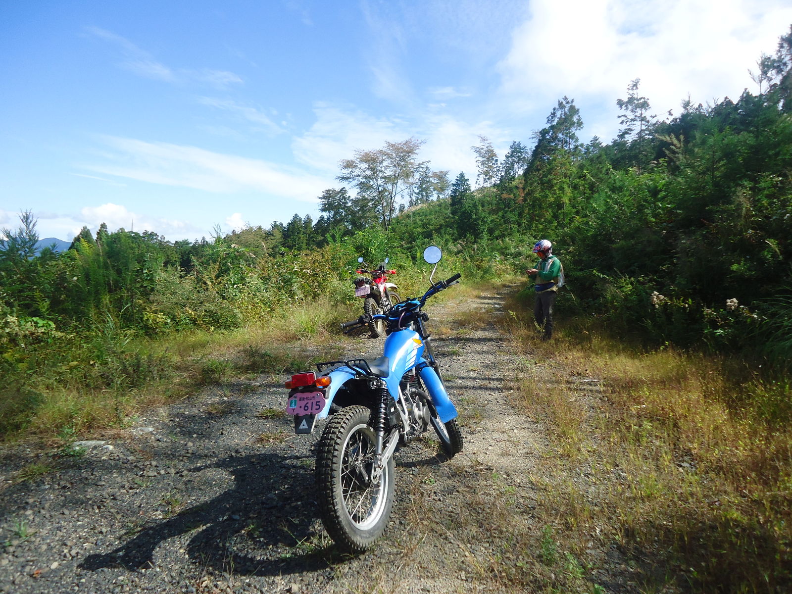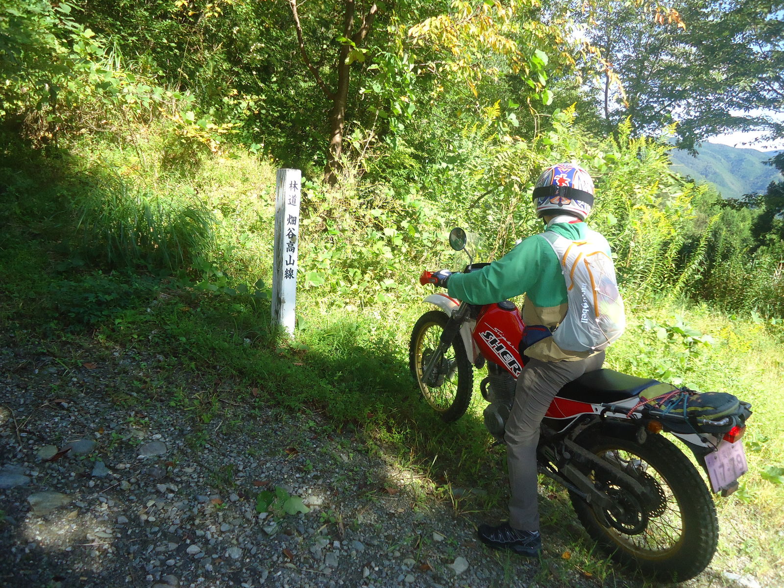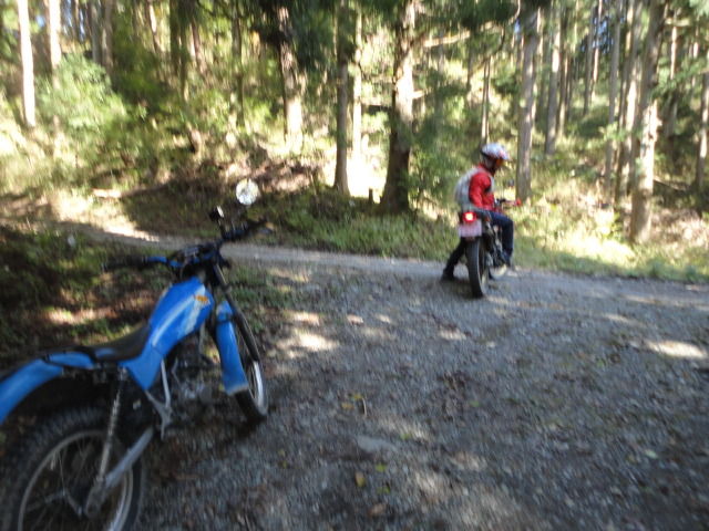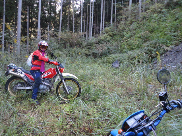 ちなみに、ここからの林道までの引き返し、かっちさんのシェルパ号、1速でギリギリだったみたい。ワダチが縦に筋のように入り乱れて、さながらビギナー用トライアルセクションみたいな感じでおもしろかった。。TL125は2速で余裕でした。。笑