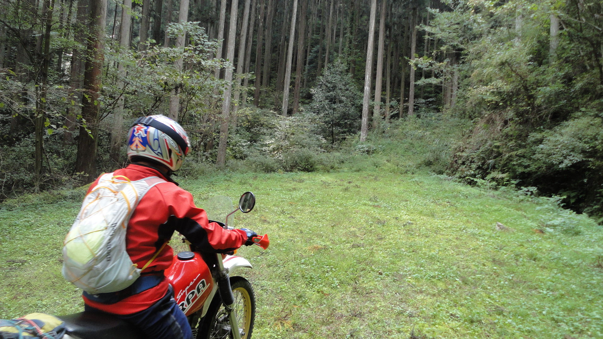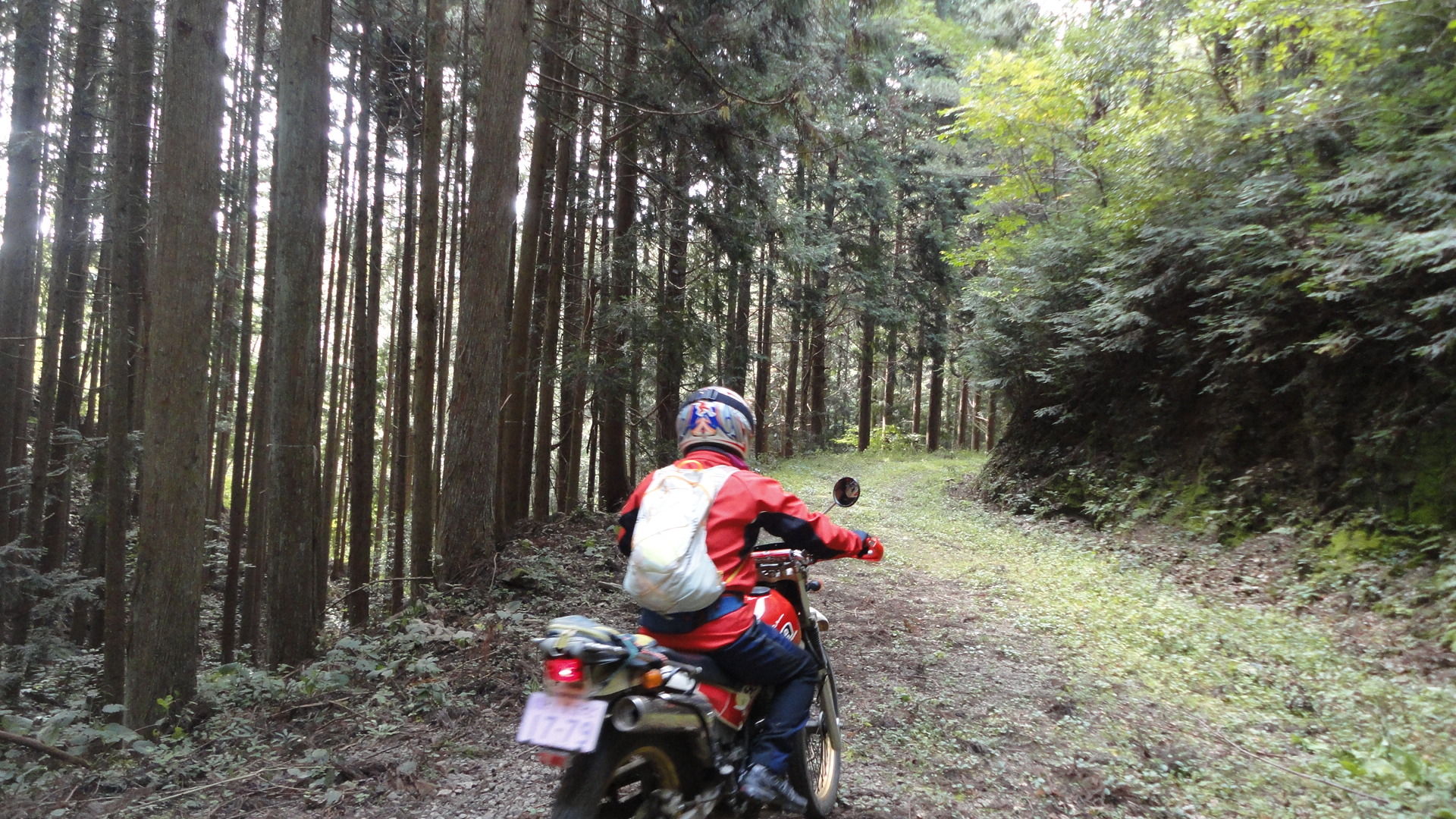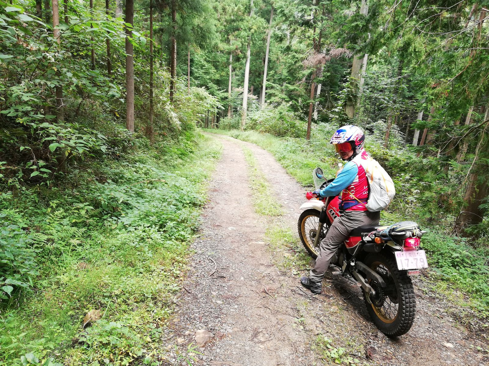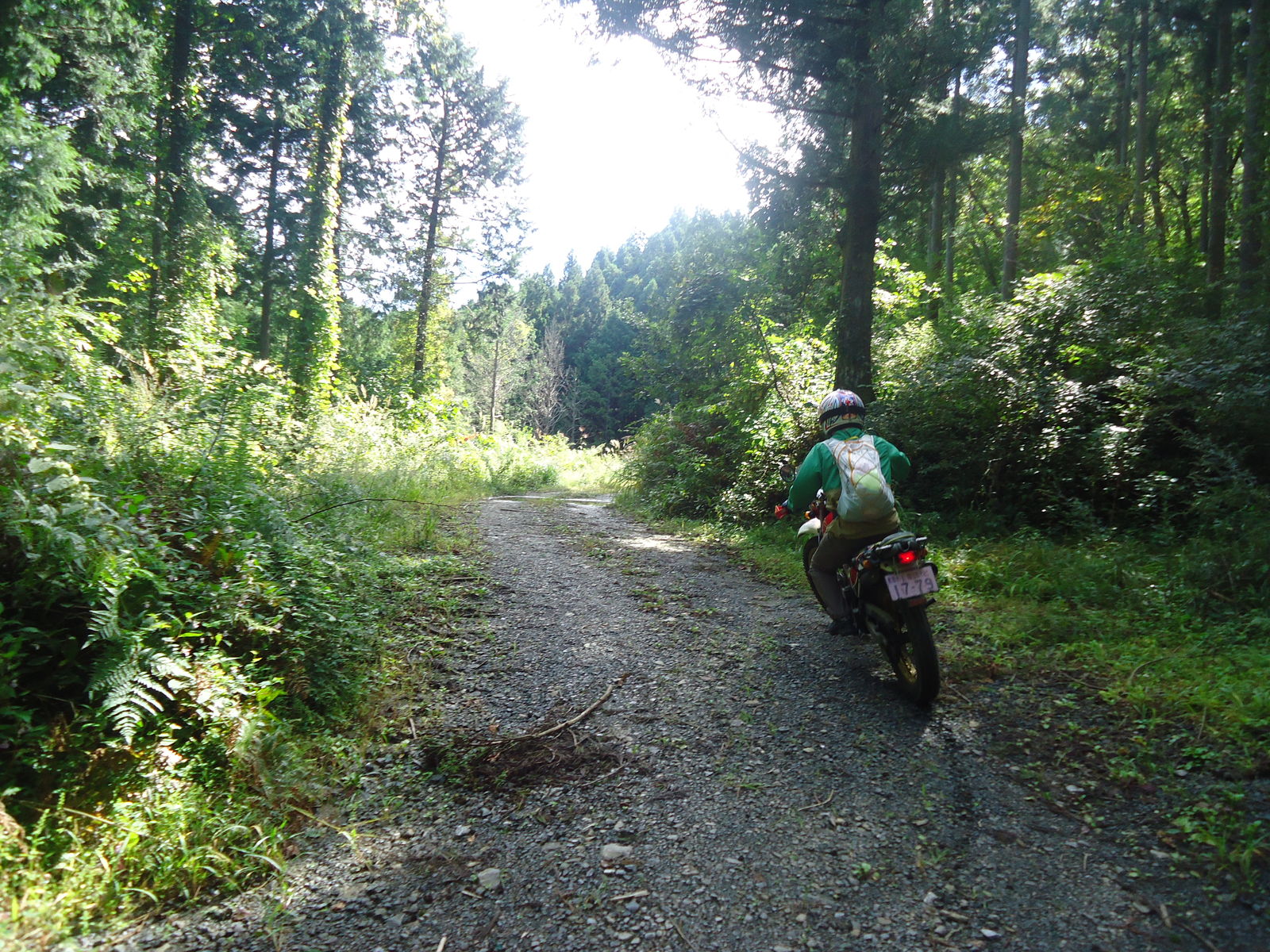 ちなみに、ここからの林道までの引き返し、かっちさんのシェルパ号、1速でギリギリだったみたい。ワダチが縦に筋のように入り乱れて、さながらビギナー用トライアルセクションみたいな感じでおもしろかった。。TL125は2速で余裕でした。。笑