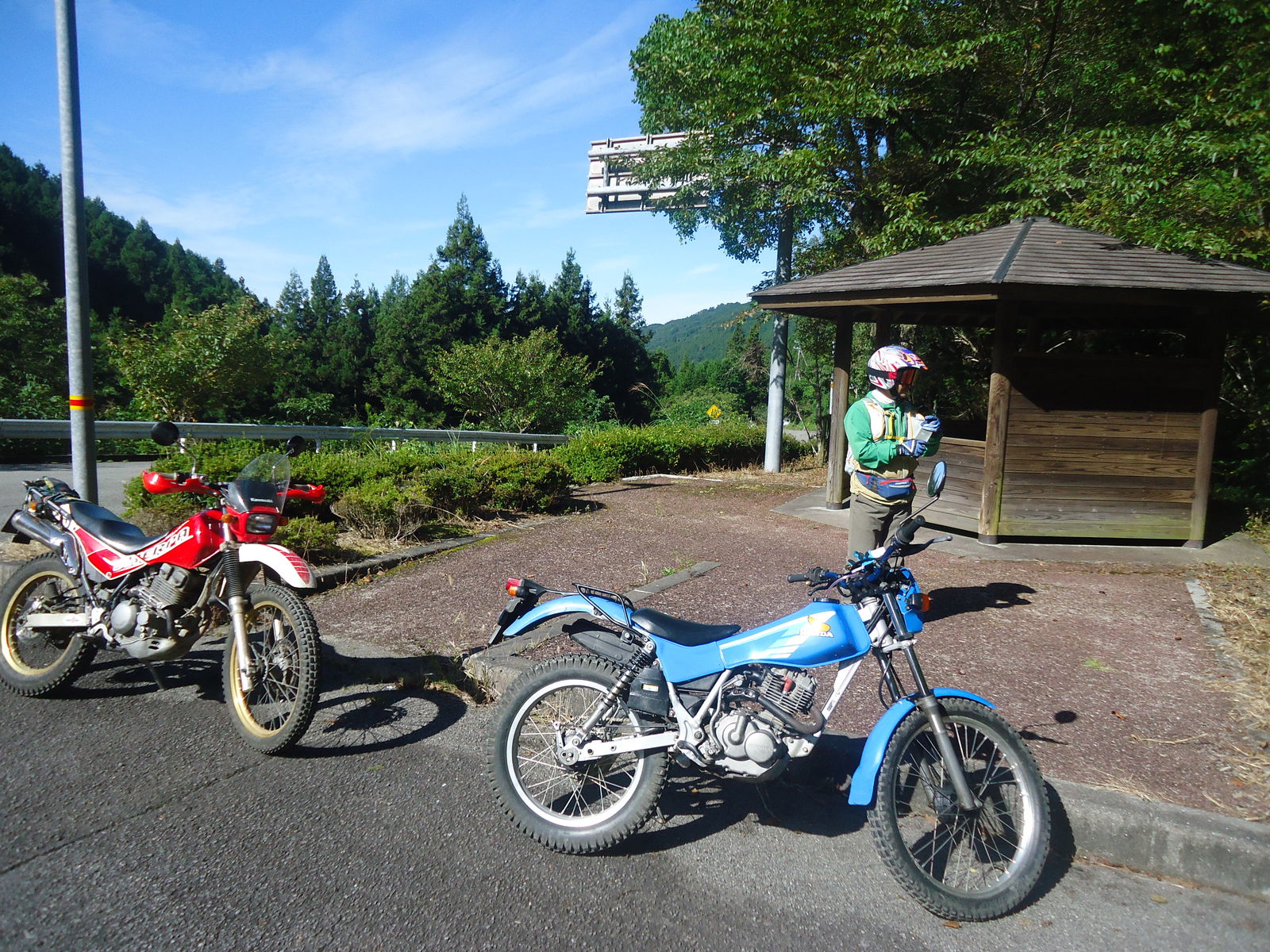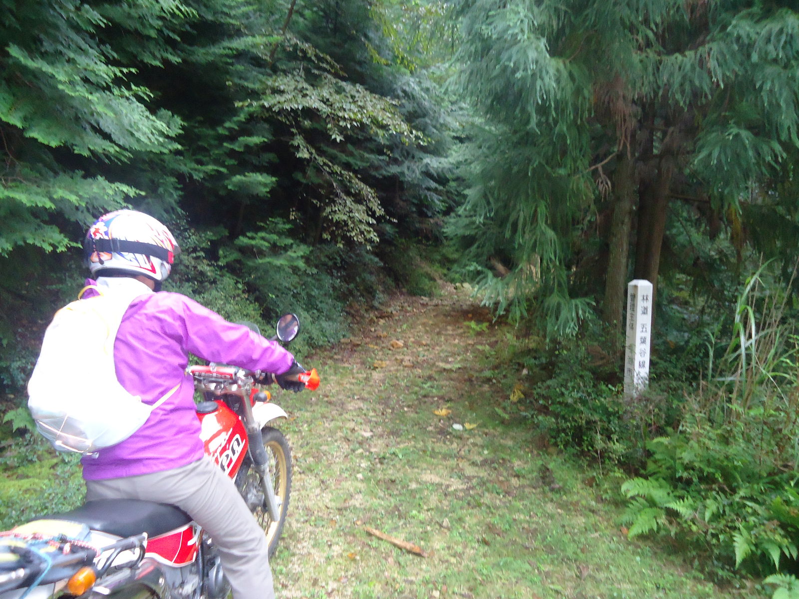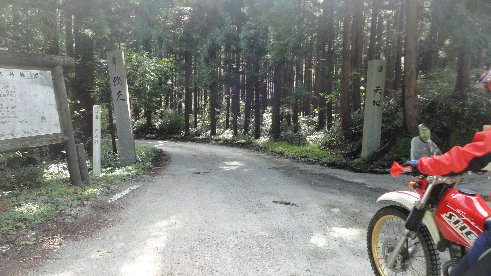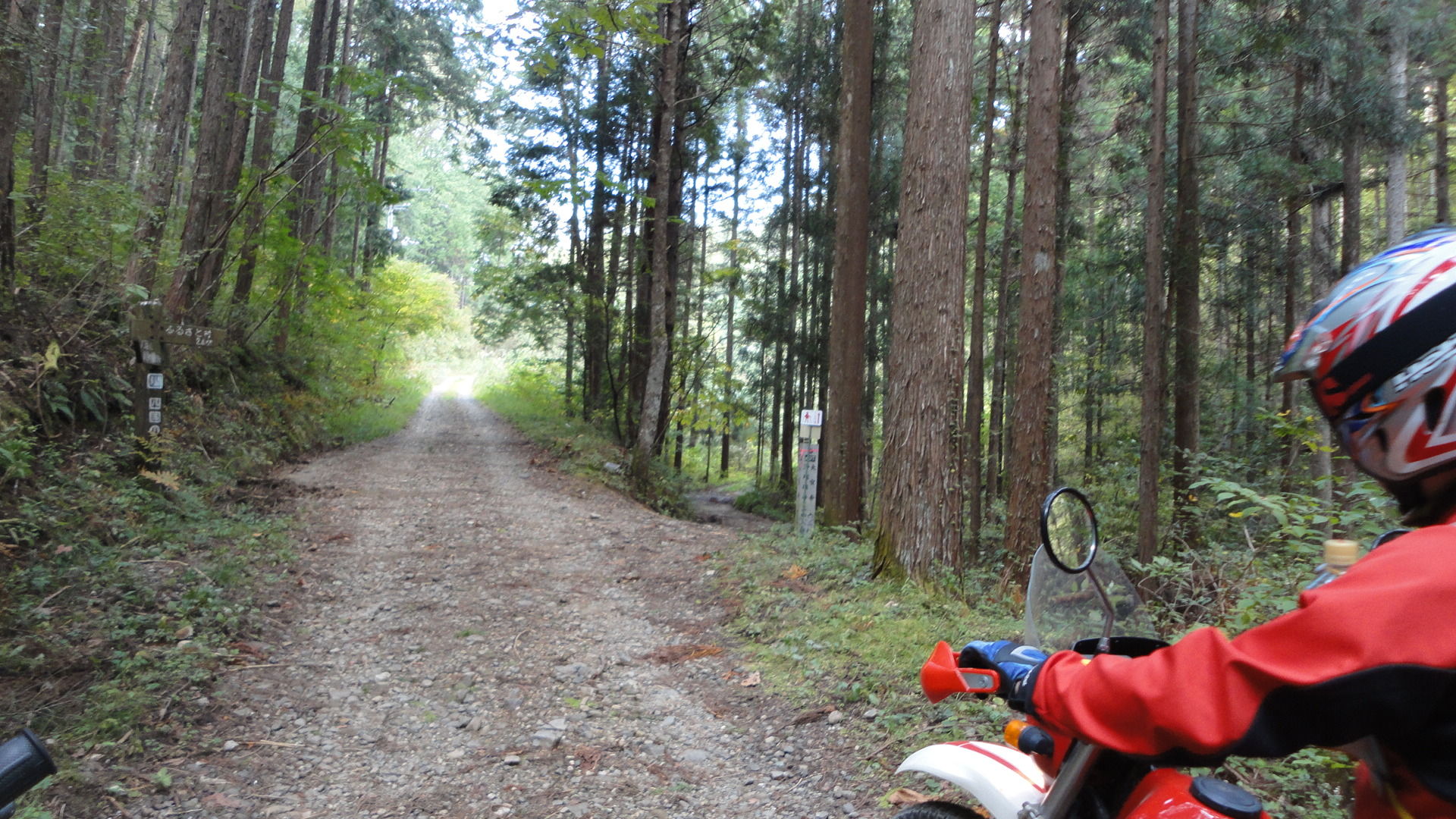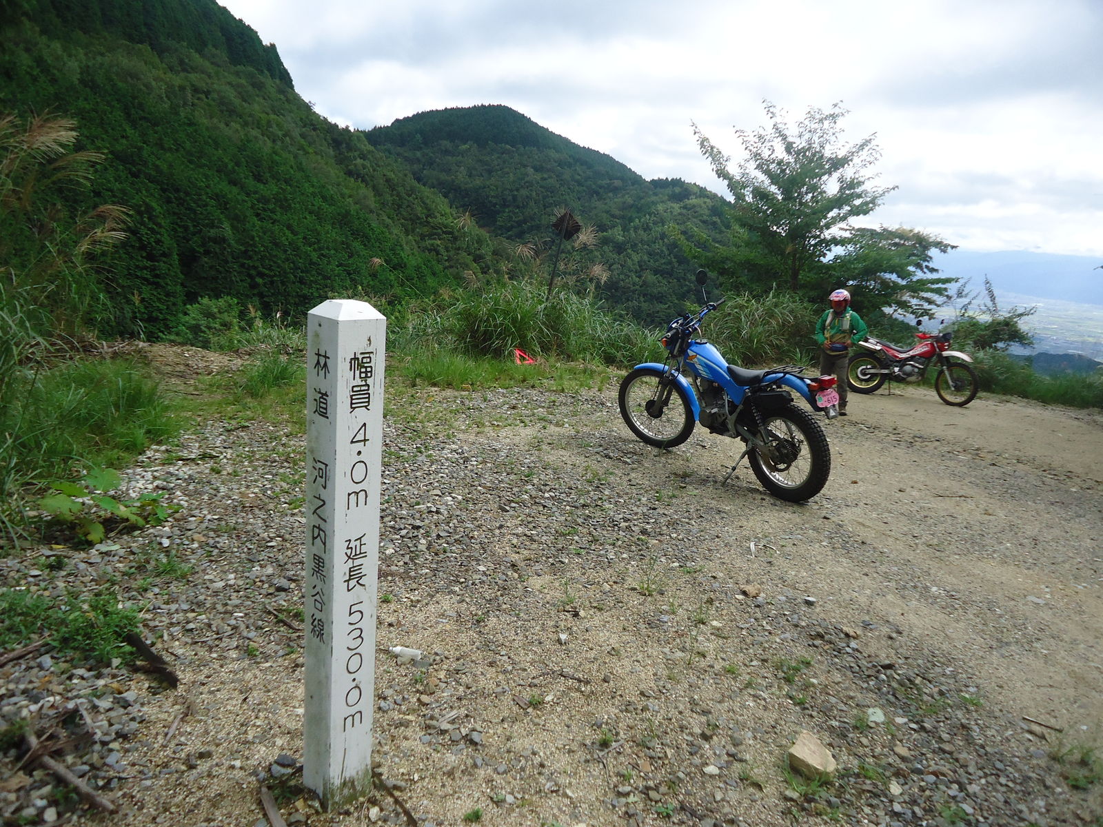 最近、白い林道のポールがあると、距離を必ず確かめる人。「今度、行ってみんといかんなぁ。。」すでに林道病にかかったようです。。笑