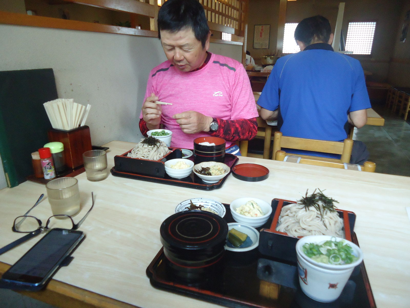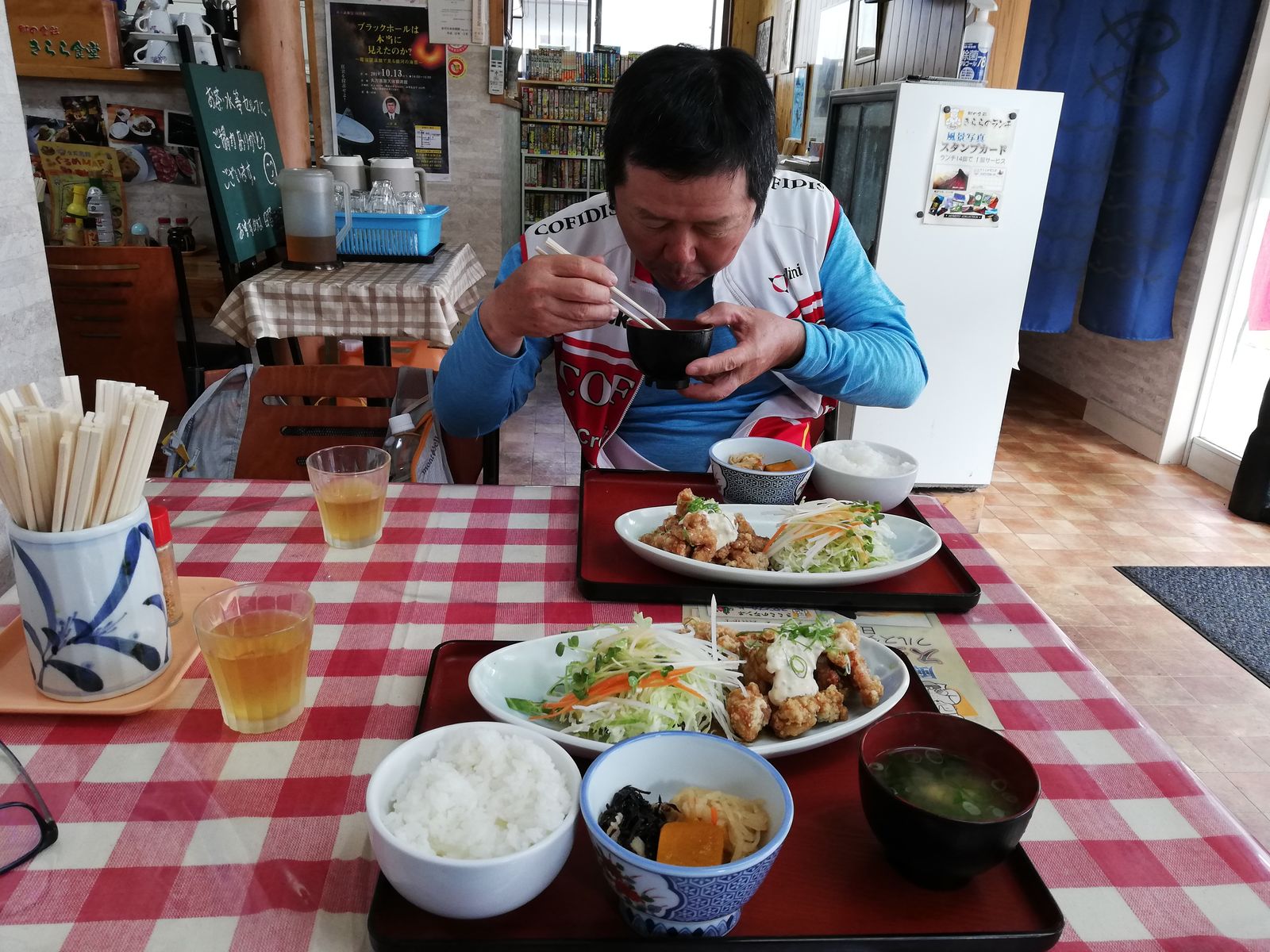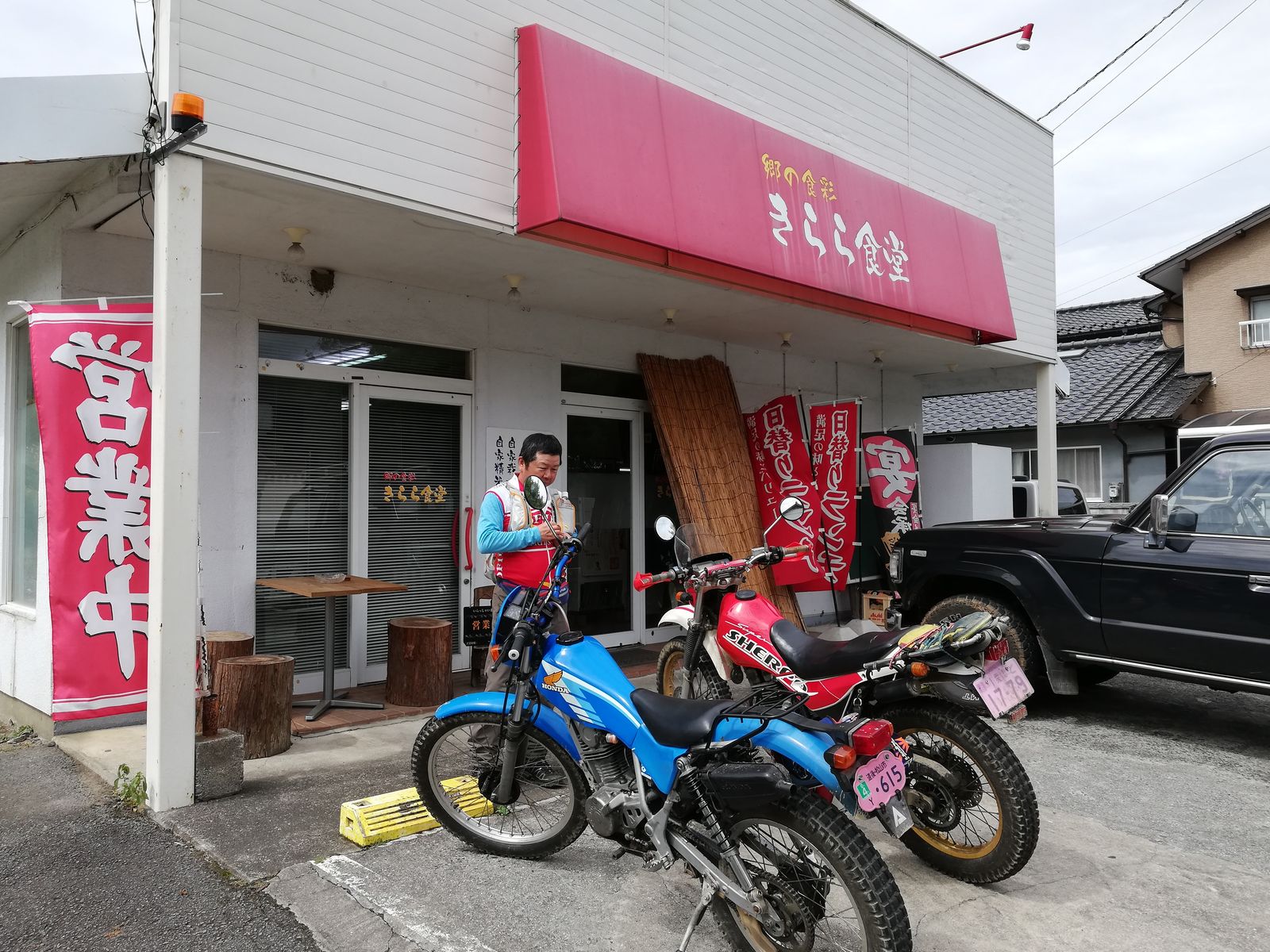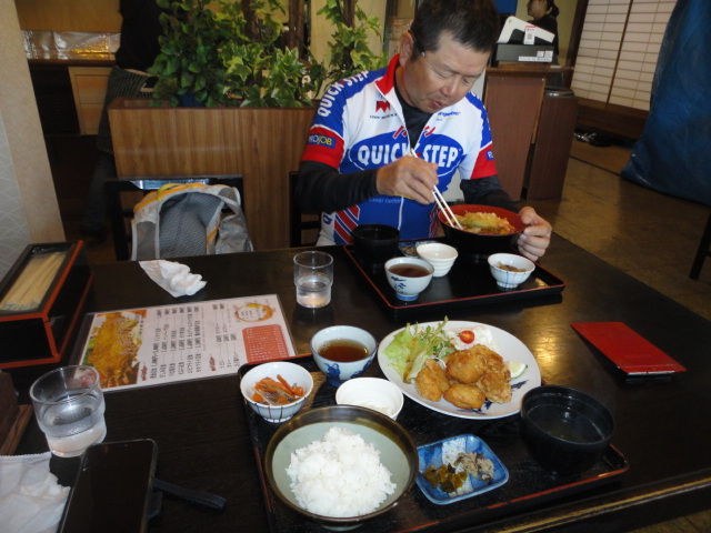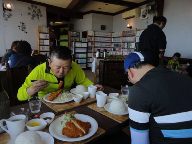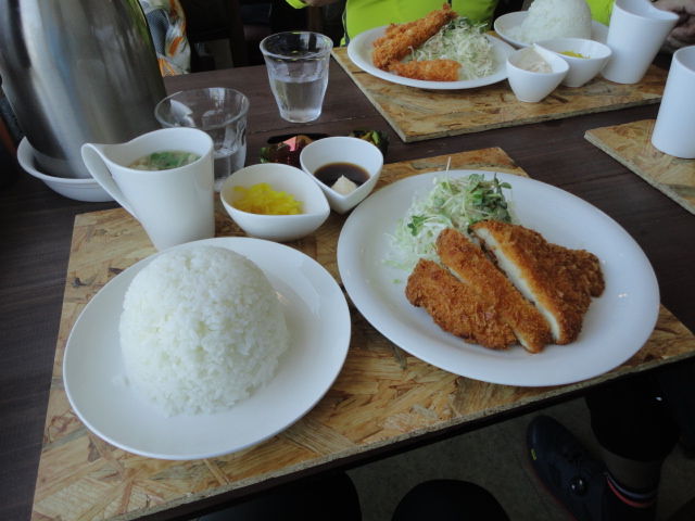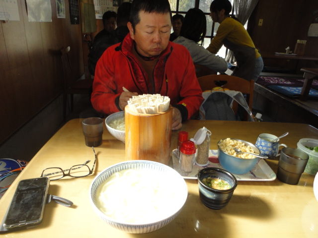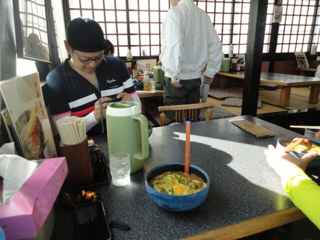 そのあとは、やまびこで定番のカレーうどん。740円。辛くてうまい。。ナオキくん曰く。「自転車よりも汗かきますね。」笑