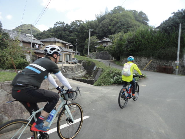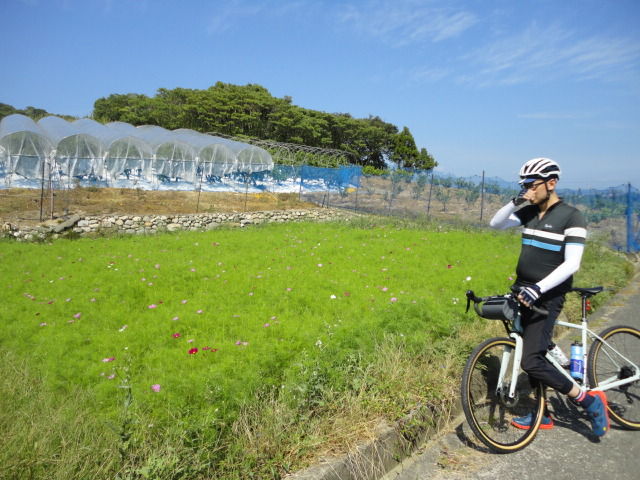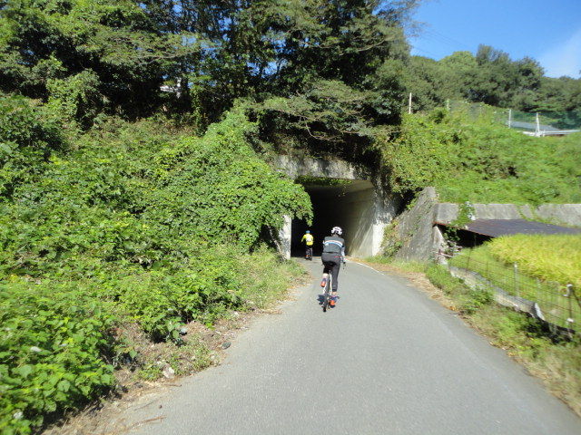 小野カン周辺の道は、台風の影響か、木々が散乱して結構荒れてたけど、ロードバイクで走っている人がいました。。反対からはクロスバイクの人も。