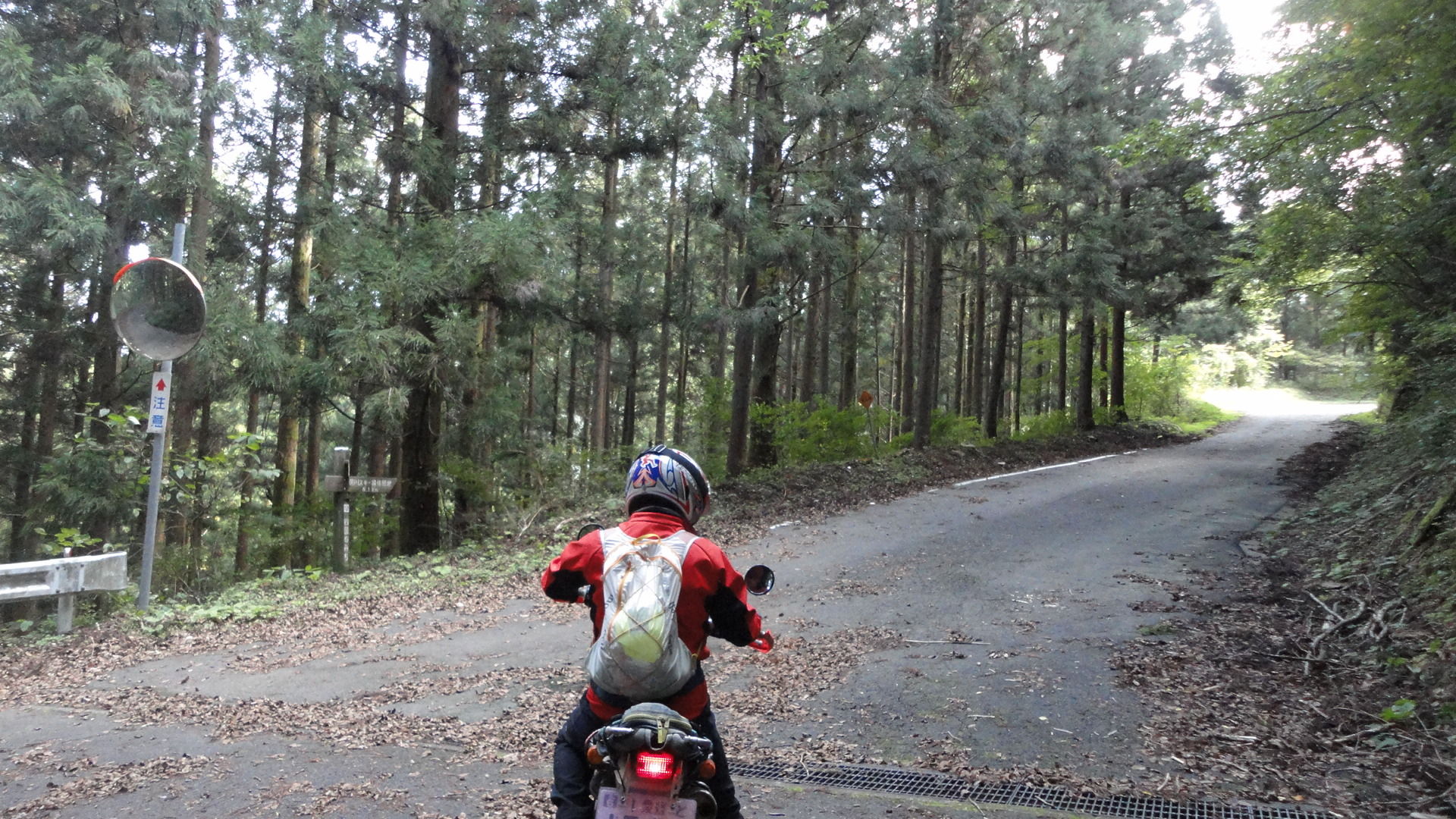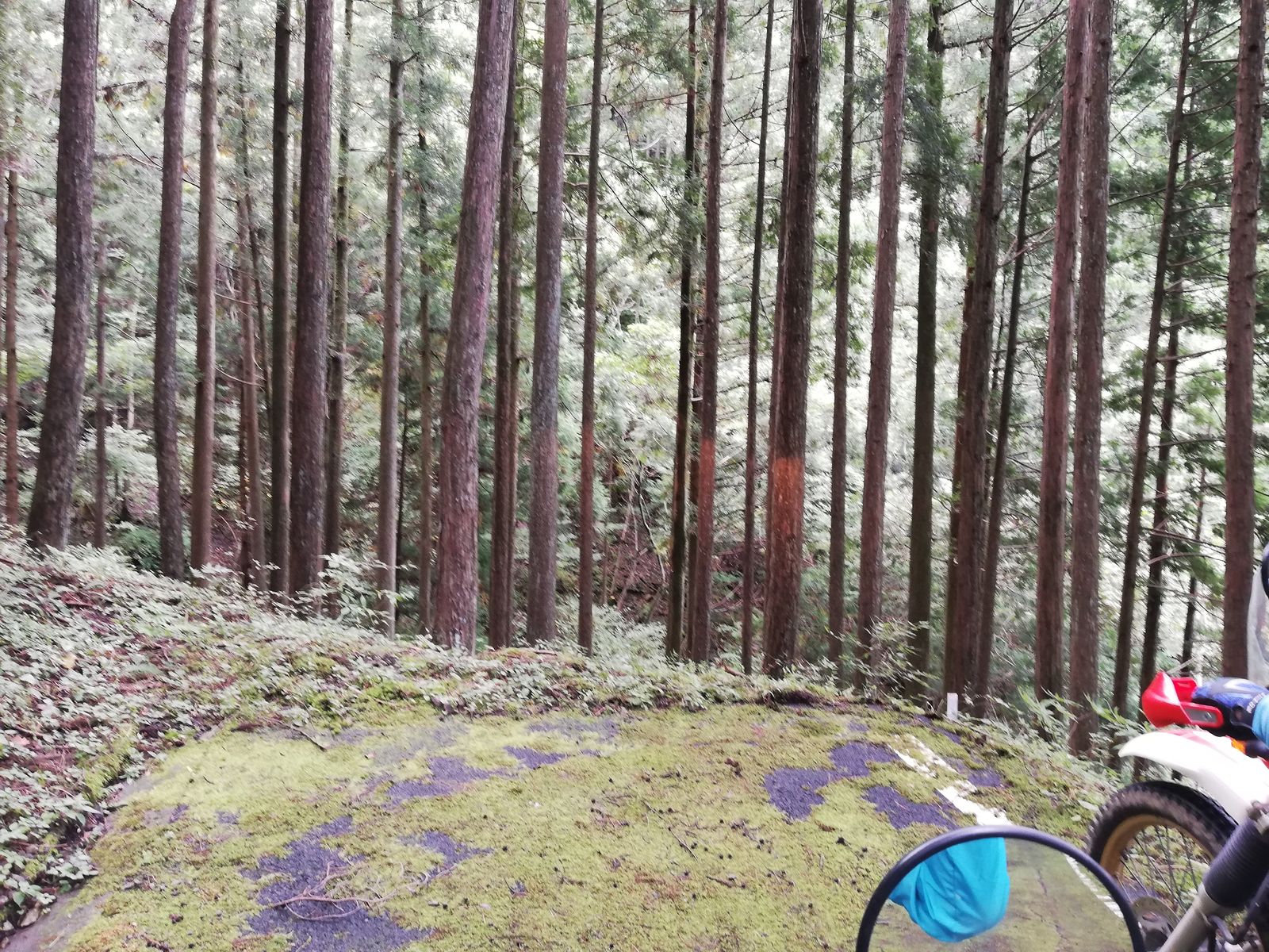 畑谷高山線へ。途中からアスファルトになったけど、苔でツルっといきそうな路面。スタンディングしながら慎重に下ります。
