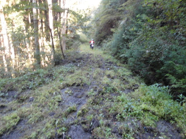 前半はイノシシが掘り返した感じになっていて、走りにくい。。