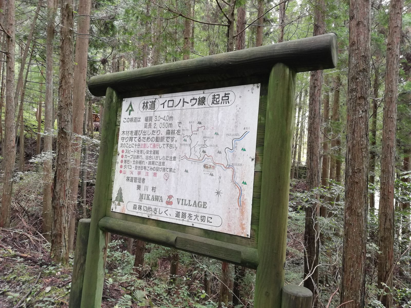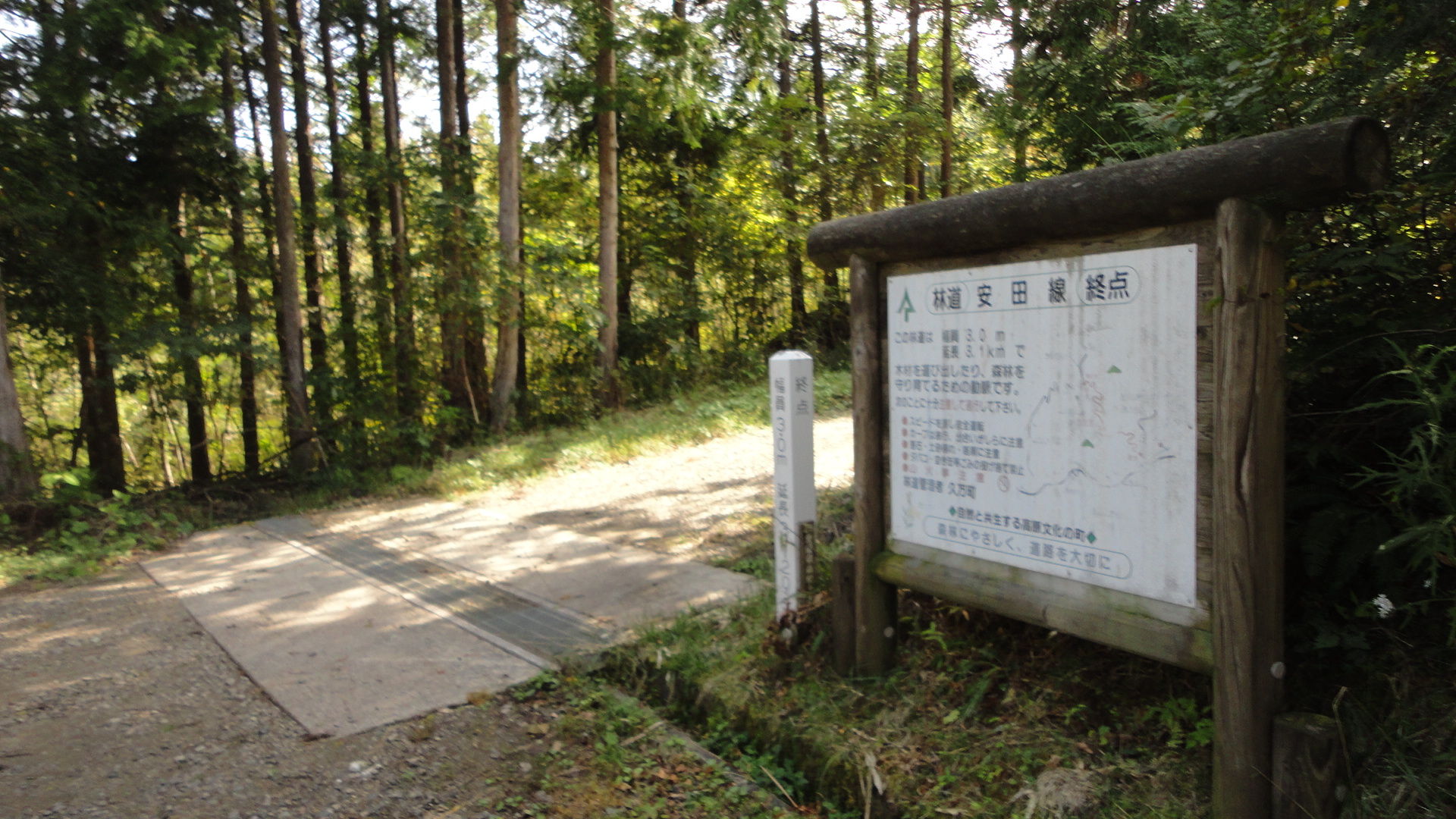 林業のおじさんが、この先、問題なく落合まで行けるよ!とのことで、安心して林道をトコトコと下りていくと。。
