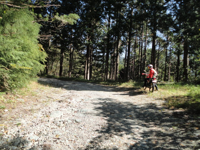 水が峠トンネルを越えて、五葉谷林道へ。嵯峨子城址の桜で有名なポイントですね。狭い道を上がっていくけど、この道も、台風の影響か?木や葉っぱが道を覆って走りにくい。。
