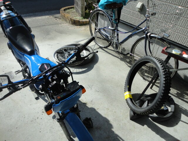 ホイールのリムテープも朽ちかけていたので、自転車用のリムテープをぐるぐると巻いて補強。久しぶりのバイクタイヤの脱着時にチューブを噛むというミスもしでかしたので(笑)、パンク修理して2回脱着をしました。。苦笑