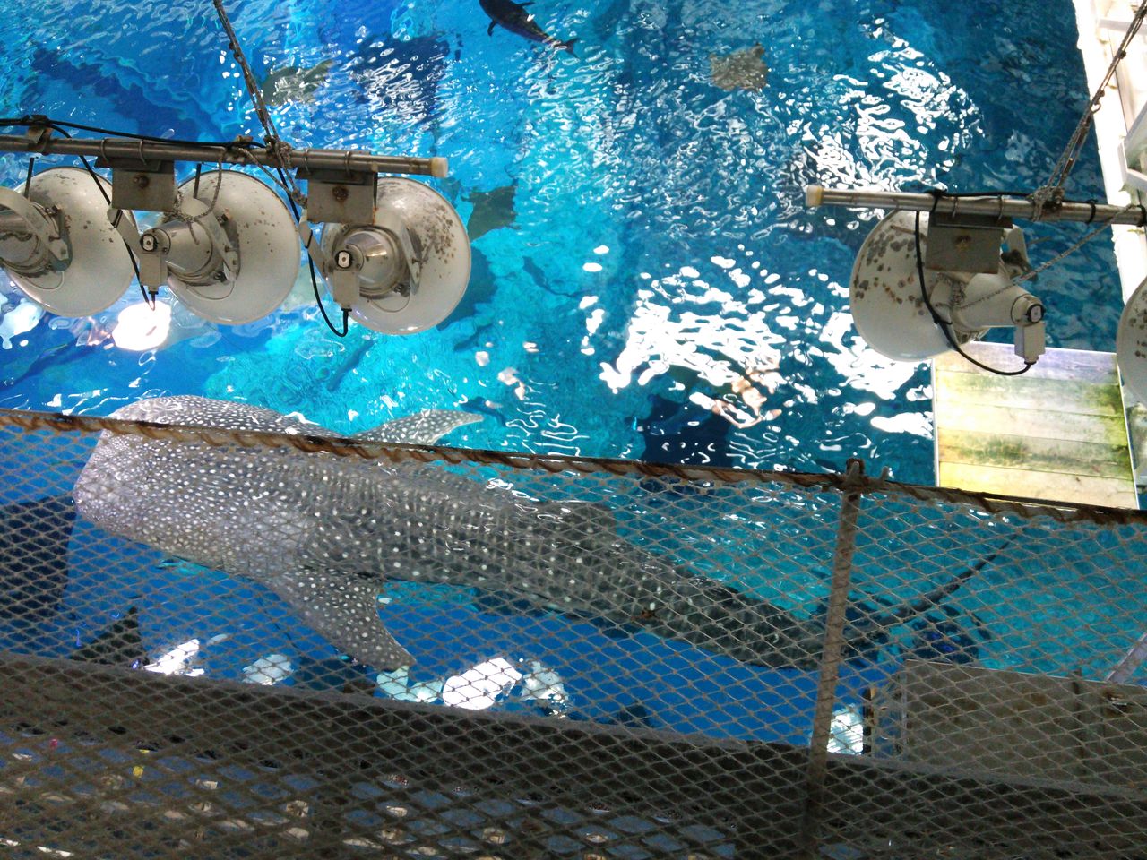 一昨年にも来たことがあるので新鮮な驚きといったものはありませんでしたが、今回は大水槽を上から見学する機会に恵まれて、ジンベイザメやマンタを上から観察してきました。