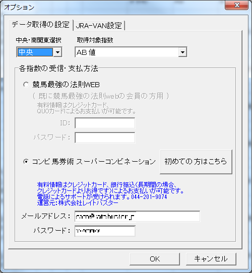 3.各指数の受信・支払い方法から取得先を選択し、IDとパスワードを入力します。