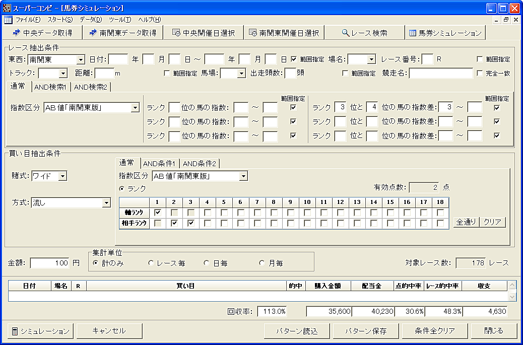 さらにランク3位と4位の指数差が3以上という条件にしたところ、回収率が113.0%、レース的中率が48.3%にも達しました。