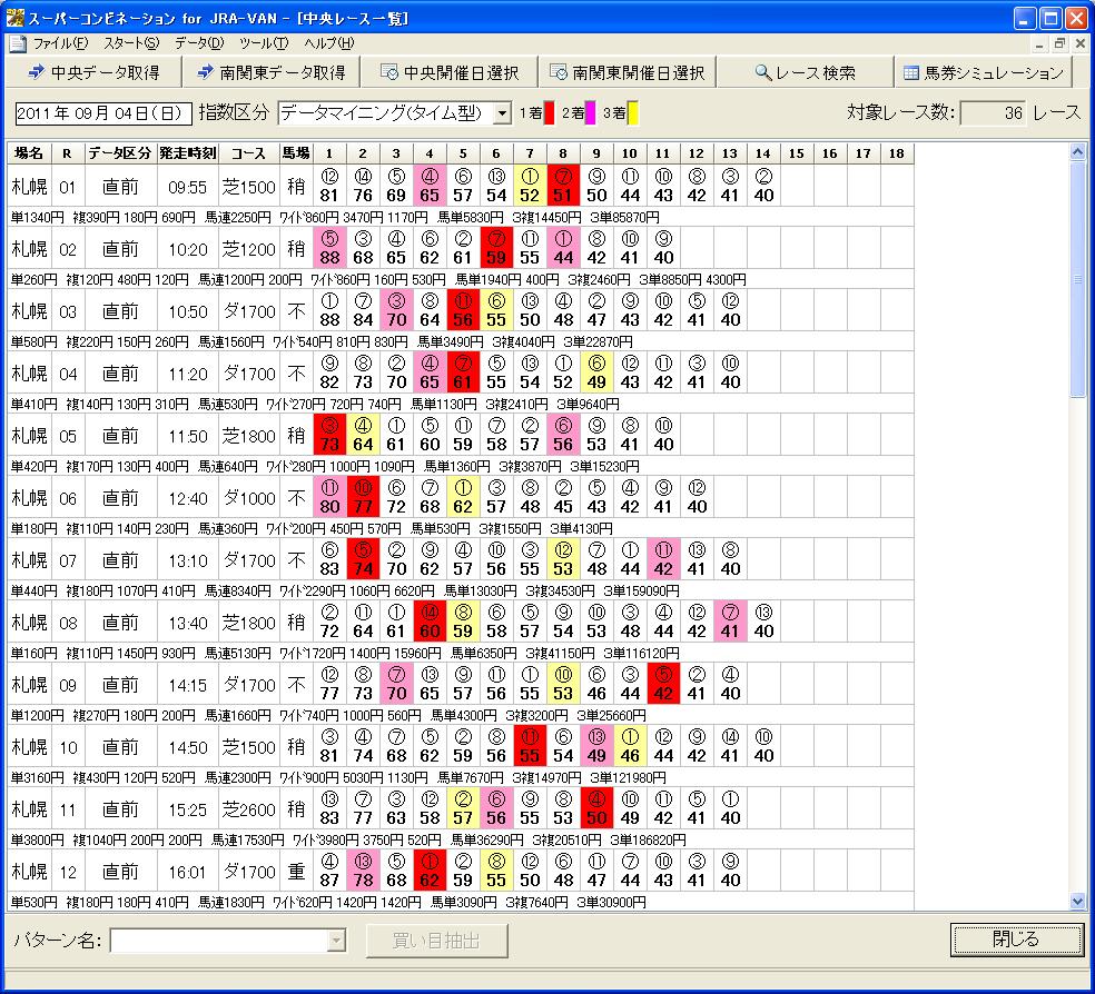 レース開催日に、「中央開催日選択」からレース開催当日のレース一覧を