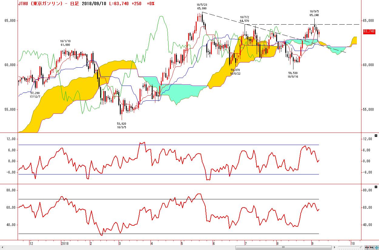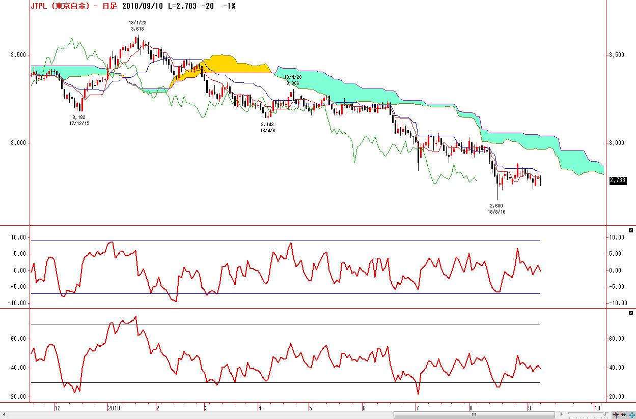 安値は2758円まで出しているので今のところは下髭が目立つ形となっているがそれでも陰線型となっているので転換線の抵抗のほうが気になる形かな。