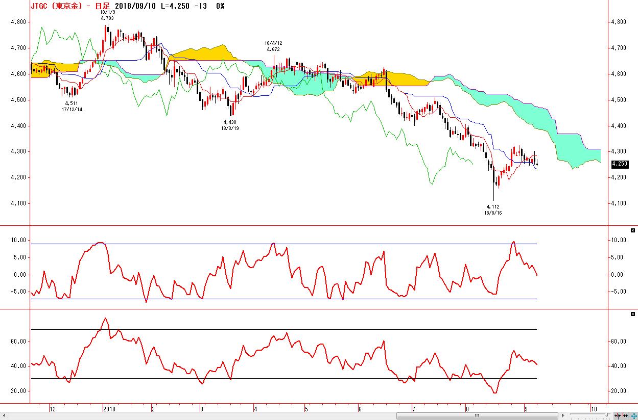 基準線は4231.5円まで切り下がりとなっているのでこれを追いかけてくる雰囲気となってきているか?