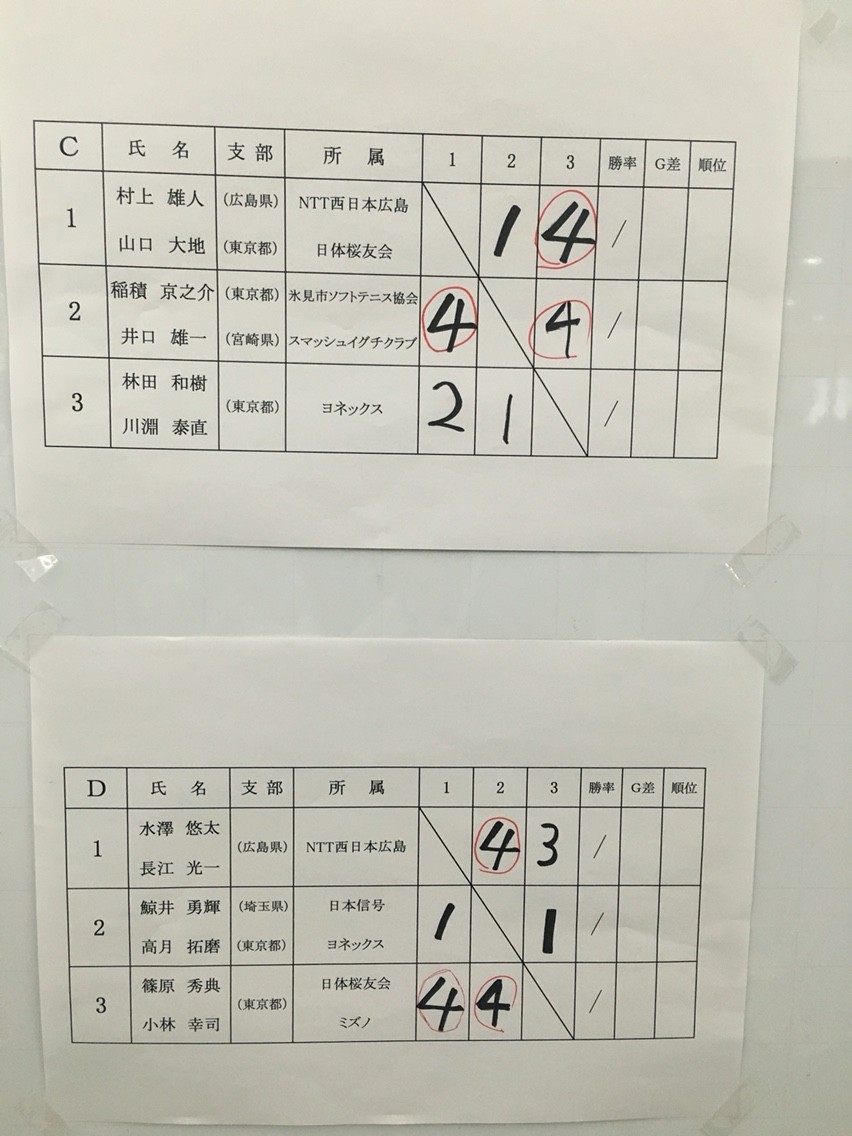 決勝戦G2−0と稲積・井口(氷見ソフトテニス協会・スマッシュイグチクラブ)から先制するも追いつかれカウントはG3−3へ。