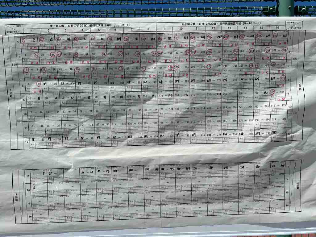 屋外コート(1-12コート)は雨天のため10:45まで待機となっています