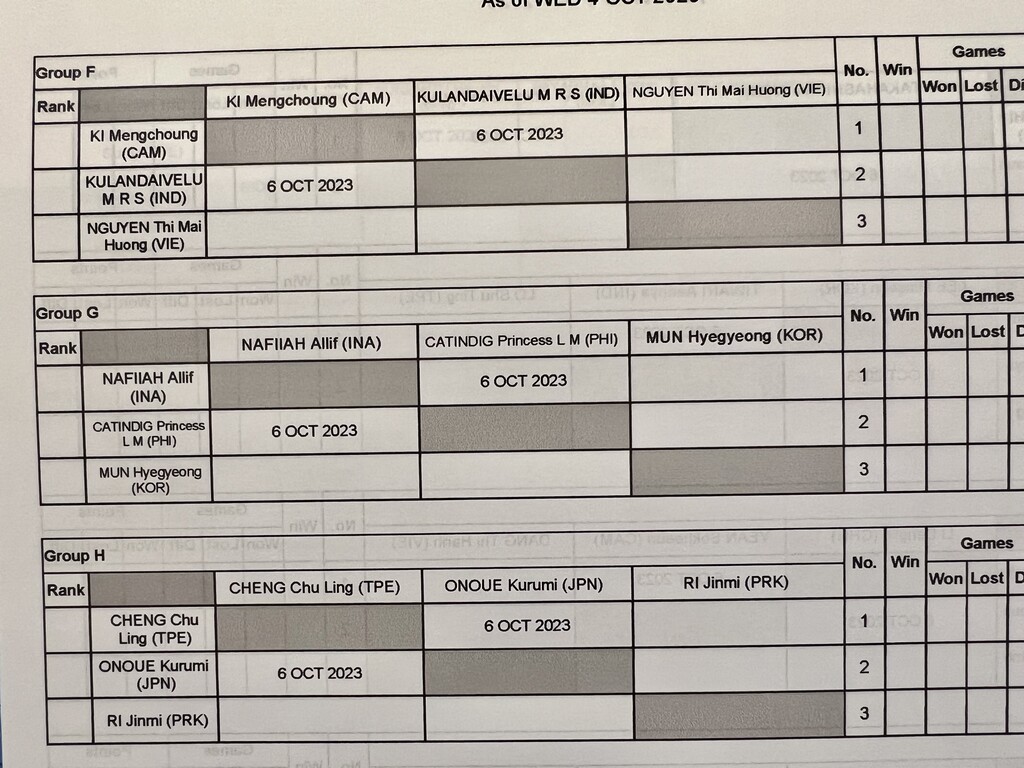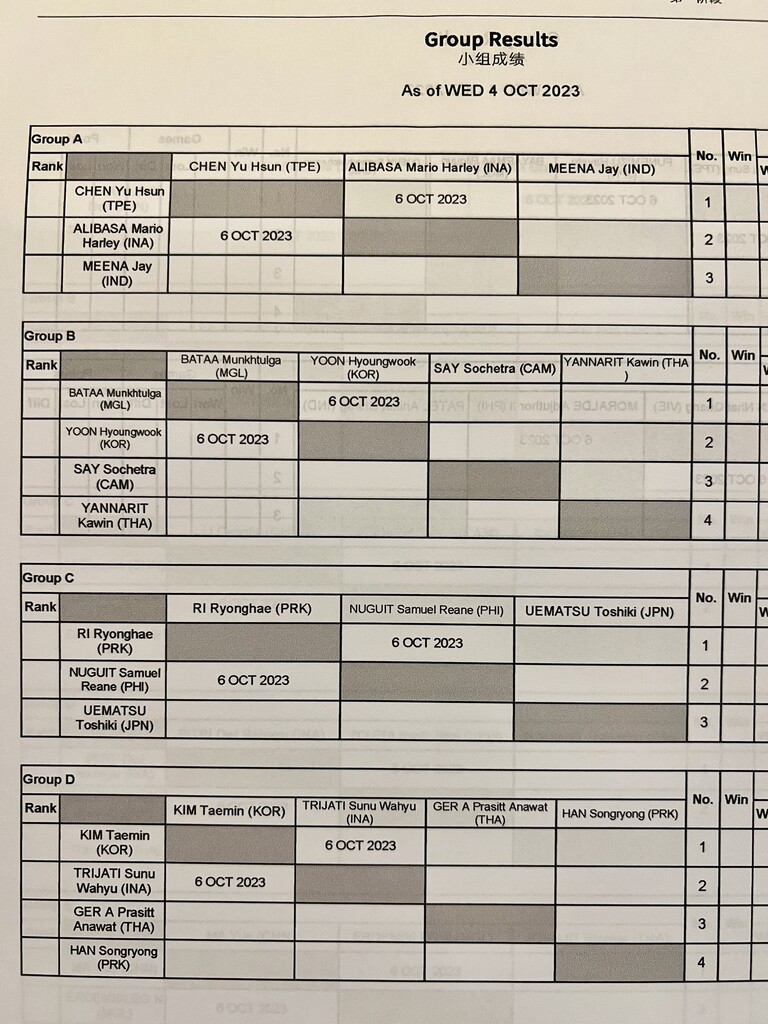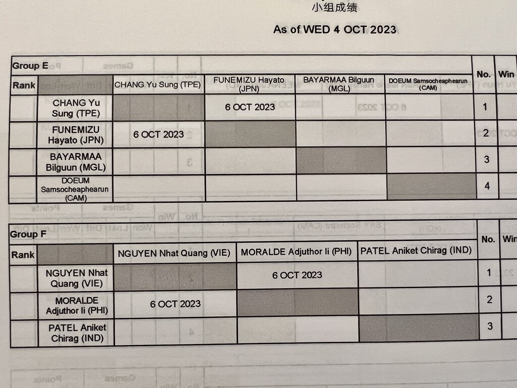 【アジア大会2023】シングルス予選、船水颯人、上松俊貴、高橋乃綾、尾上胡桃の4選手ともにリーグ戦突破! 明日のセカンドステージは、女子は準々決勝から、男子は同士討ちに https://t.co/WHv7Fg8p5D