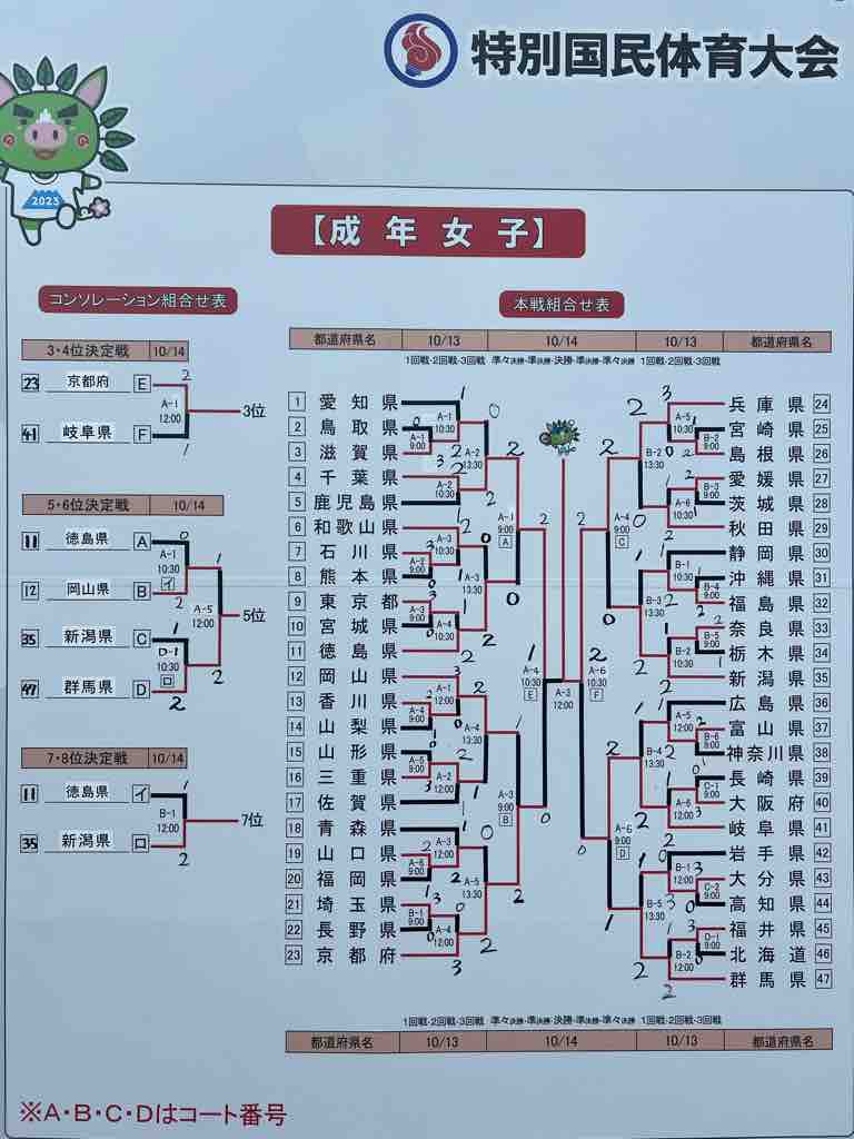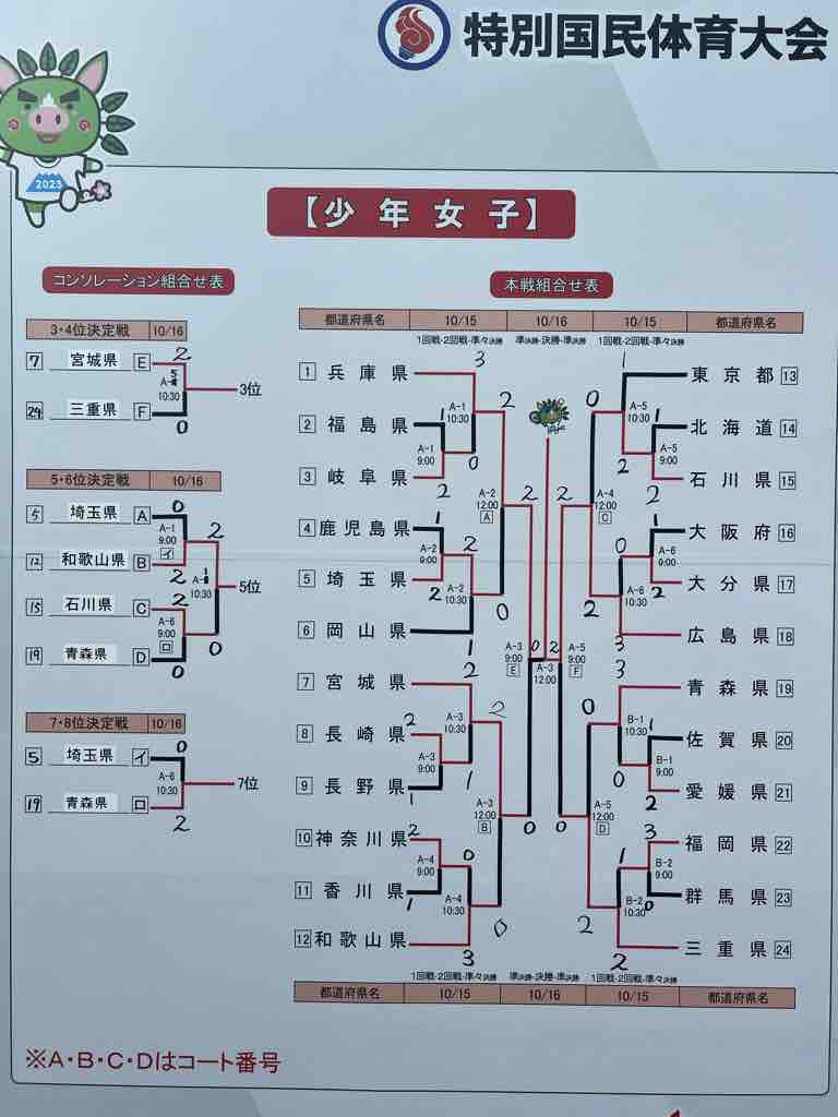 少年女子決勝は国体連覇をねらう須磨学園高校単独チームの兵庫県とインターハイ団体準V 広島翔洋高校単独チームの広島県の対戦に!