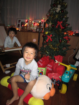 クリスマスは、家族だけの小さなパーティーでしたが、たくさんプレゼントをもらって、子ども達は大満足!