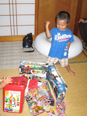 興奮して落ち着きのない息子に追い討ちをかけるように、プレゼントが・・・