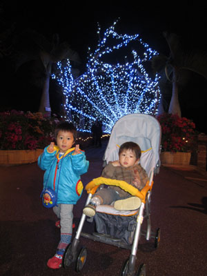 というわけで、今年のクリスマス・イブは・・・東南植物楽園のイルミネーションを見にいきました。こどもの国か迷ったんだけど、何せ旦那様が出張中なもので、ひとりで子ども達を連れて行きやすい方にしました。
