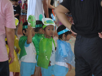 始まる前からテンション上がってて、園庭を友達と走り回ってました。いつもの学校だけど、みんな浴衣や甚平を着ているし、家族もいて、イベント事だと分かっているからでしょう、とても嬉しそうでした