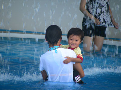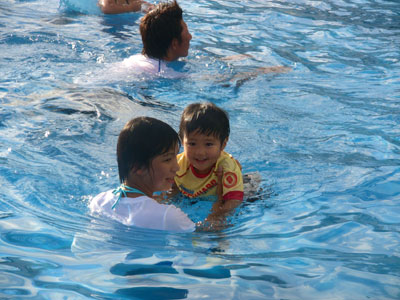 今じゃ〜逆に私の息子に水泳を教えるほどお姉さんに。