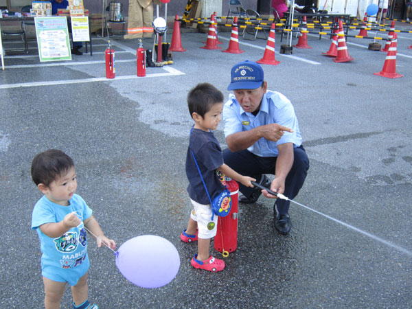 やはり見慣れているからか、上手にやっていました。終わった直後、もう一回やる!と言って、別の消火器を手にし・・・本当は一人一回のところ、わがまま言って、2回もさせていただきました