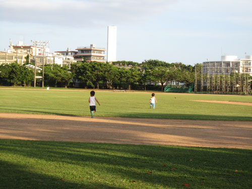 たっぷり眠った後は・・・長男の希望で夕方に近所の公園へ
