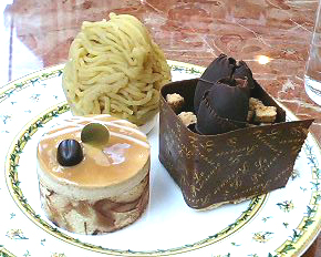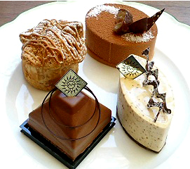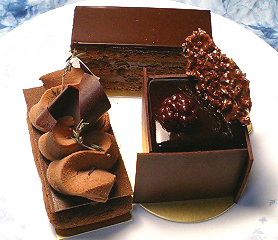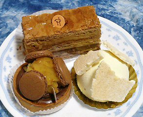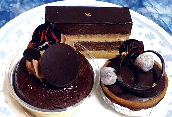 ショコラ・カエールで購入した最後のガトーです.左から時計回りにサヴァランショコラ,アンダルシア,タルトヴルールです.
