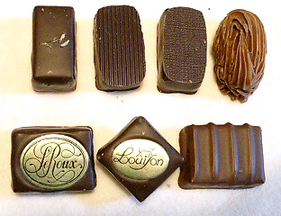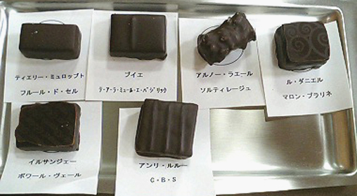 う〜〜〜ん!!ウンマイです!特に気に入ったのはイルサンジェー氏のボンボンショコラです。リストには胡椒味となっていましたが実際はバジル風味です。このボンボンショコラはジュラ地方特産のワインをたっぷり使用しているそうで、全くアルコール分を感じいさせないのにワインの風味がしっかりしているのです。しかもガナッシュの滑らかな事!非常に個性的で美味しいです。