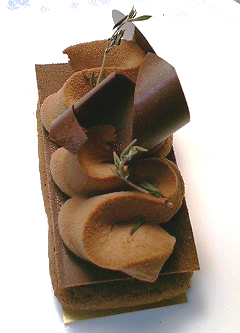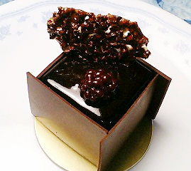 【レシフ】これ、巷ではあんまり評判よくない様ですがもうビックリするくらい美味しかったです。見た目は【ムッシュアルノー】そっくりですがあちらがショコラ+生地やナッツの美味しさで勝負するガトーであるのに対し、まさにショコラの美味しさの直球勝負です!ショコラクリームはタイム風味でこの組み合わせにシェフのセンスと自信のほどが伺えます。使用されているタイムも香りがすばらしく良いので、甘くないショコラを大人の味に仕上げ、かつ高雅な香りがプラスされている感じです。ムッシュアルノーよりも2〜3段上の味に仕上がっていると思いました。これはグルメな男性が最後に頂くデザートと言った感じです。