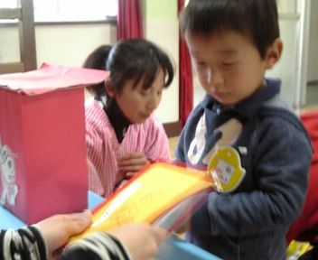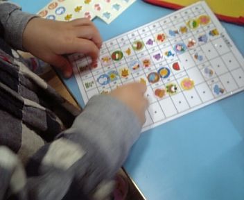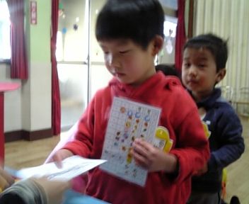 出席シールをペッタン