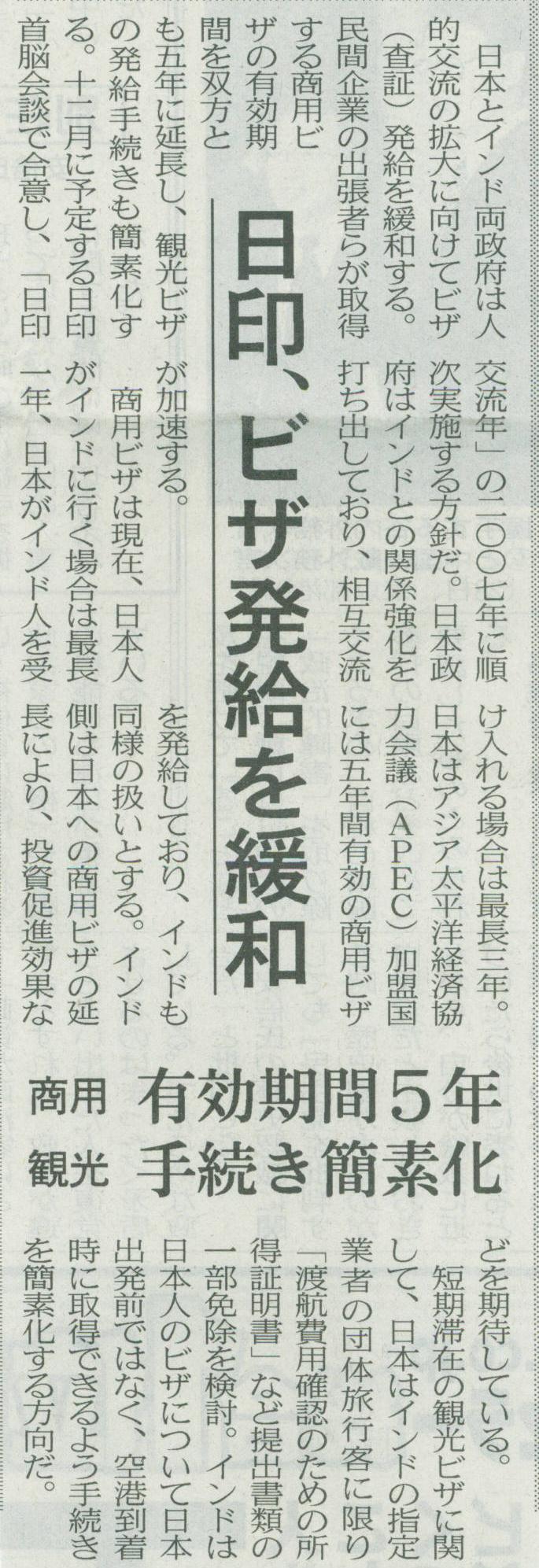 これにあわせて、インド政府も日本人向けにビザ手続の簡略化、条件緩和を発表しました。