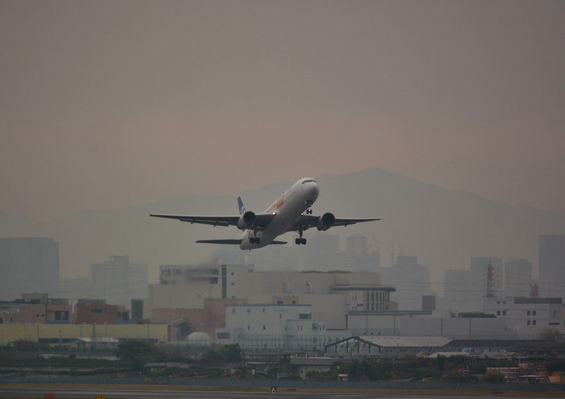 完全に曇っていましたが、早朝から伊丹空港へ・・・。