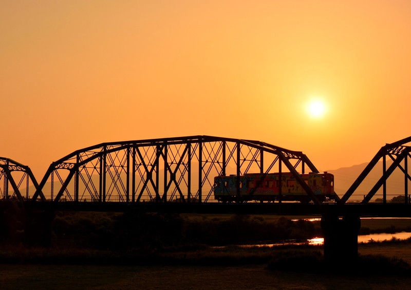 初めてのモレラ号は、トラスの影を入れて・・・。陽が傾くにつれてトラスの影も伸びるのですが、