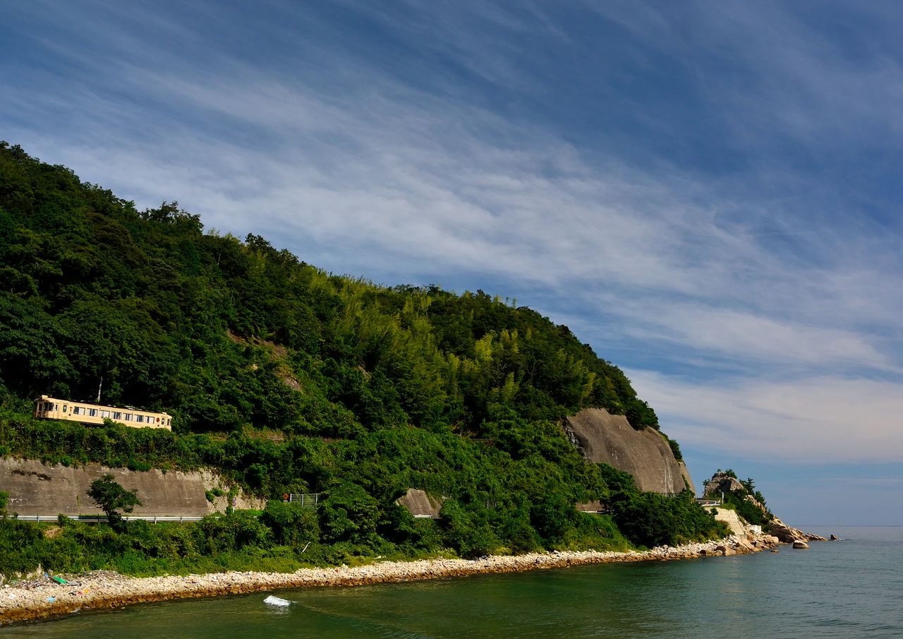美しい空と海、そして青い車輌・・・。かなりテンションが上がりました。