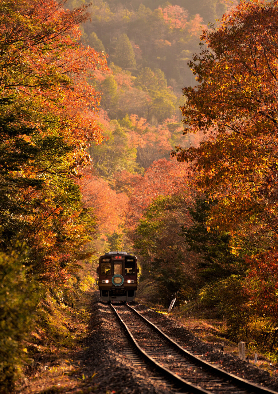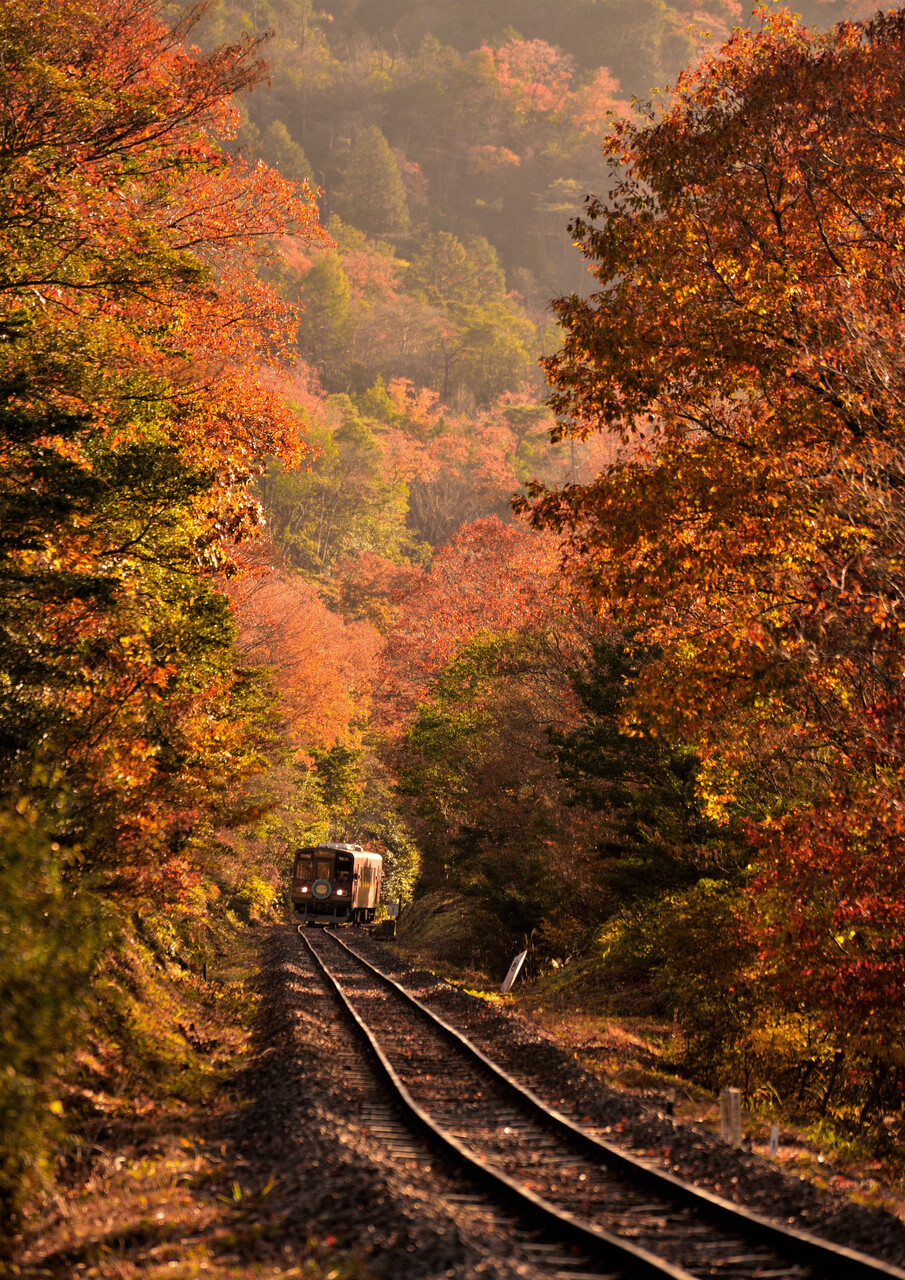 狙っていた上りはJ17編成。一瞬の日差しで銀杏も鮮やかな色に・・・。