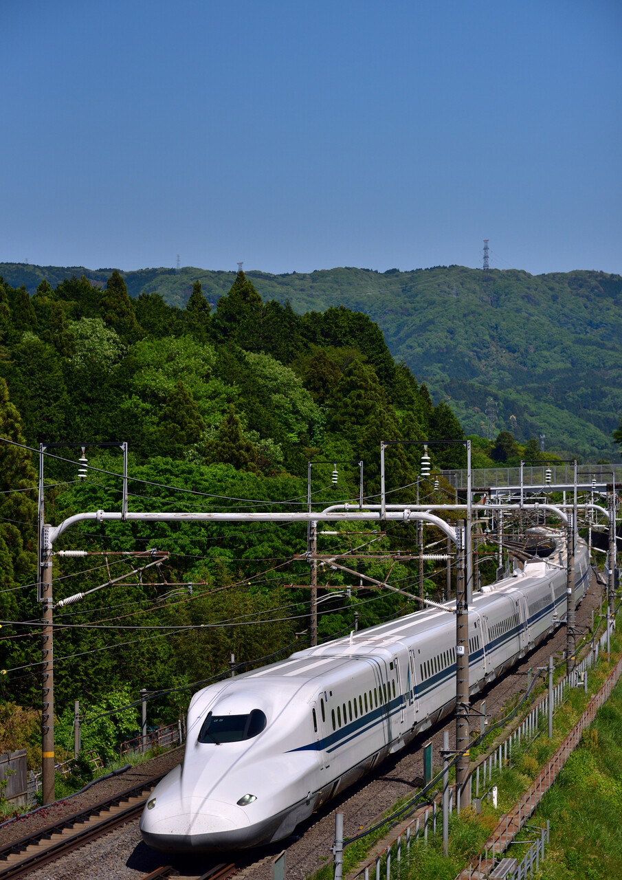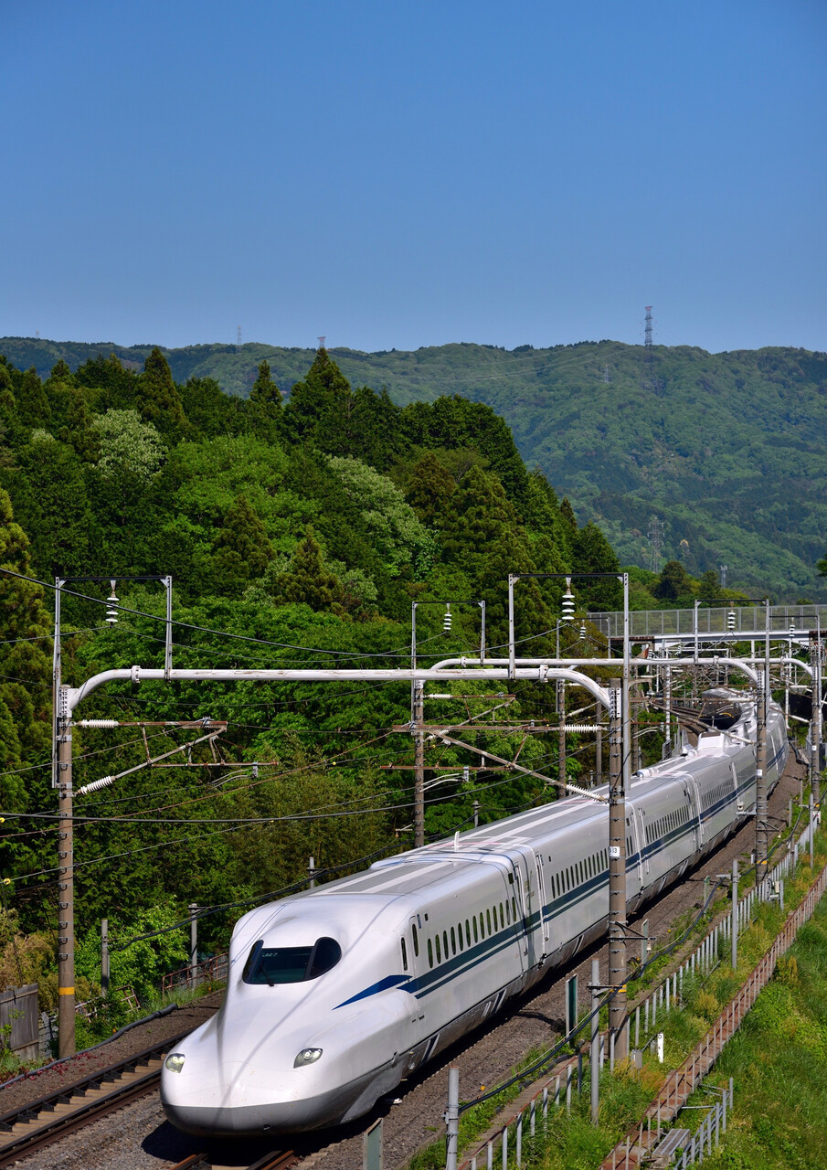 2024年05月24日 新緑③ この日、米原方面で撮り終えてからは関が原方面へ・・・。5月3日 1/1600 f/8 ISO-140 岐阜羽島~米原間スタンバイが終わりすぐに下って来たのは屋根の綺麗なG5編成。この後そろそろ下ってくるであろうと思っていたN700Sを待つことに・・・。5月3日 1/1600 f/8 ISO-180 岐阜羽島~米原間思っていたスジで下って来たJ27編成。米原方面で上っていくのを撮った後、下りスジを予測しつつ他で撮りながらのここでのスタンバイでした。新緑バックに綺麗な屋根が映えていました。