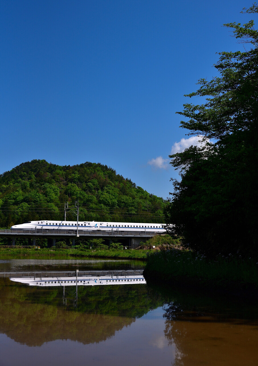 2024年05月14日 水鏡② 微妙な風がおさまらなくなってきたので・・・。5月3日 1/2000 f/8 ISO-360 岐阜羽島~米原間風の影響が少ない所で少し粘ってみました。5月3日 1/2000 f/8 ISO-140 岐阜羽島~米原間とは言え、いい感じに撮れたのはこの二枚くらいでした。残念というよりもよくこの二枚が撮れたという思いの方が強く・・・。難しいながらも満足でした。