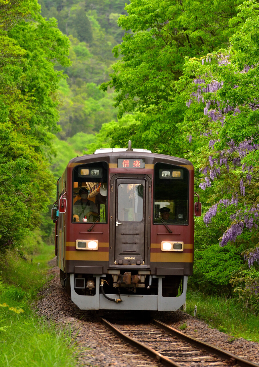 2024年05月28日 信楽高原鐵道と新緑① 今年はいいタイミングで訪れることが出来ました・・・。5月6日 1/400 f/5.6 ISO-500 信楽高原鐵道 貴生川~紫香楽宮跡間新緑だけでなく藤の花も綺麗に咲いていました。5月6日 1/400 f/5.6 ISO-500 信楽高原鐵道 貴生川~紫香楽宮跡間緑を多く入れたかったので、縦アングルで・・・。5月6日 1/400 f/5.6 ISO-500 信楽高原鐵道 貴生川~紫香楽宮跡間5月6日 1/400 f/5.6 ISO-500 信楽高原鐵道 貴生川~紫香楽宮跡間紅葉の季節も良いのですが、この時期の新緑コラボもなかなかのものです。
