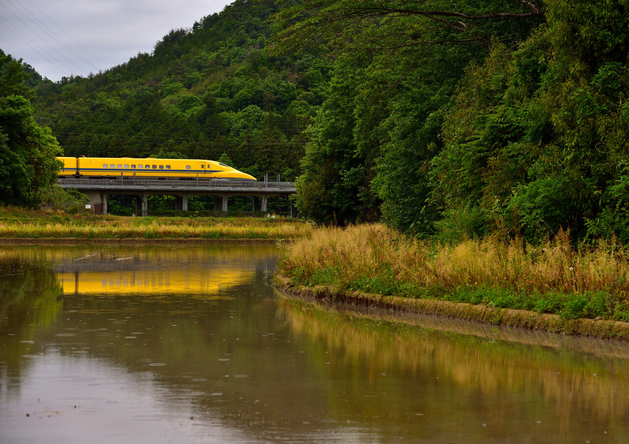 2024年05月19日 今日のドクタ-イエロ-:5/19 今日は朝から曇り空。雨も降ってくるようでしたが、早朝から米原方面へ・・・。今日のDYを何処で撮るかかなり悩みましたが、今シ-ズン最初で最後のチャンスと思い水鏡狙いで・・・。5月19日 1/2000 f/5 -1.0補正 ISO-500 米原~岐阜羽島間今日は7号車に人影が・・・。けっこう乗り込んでおられたようです。5月19日 1/2000 f/5 -1.0補正 ISO-450 米原~岐阜羽島間狙いとしてはこちらが本命でした。雨も降っており綺麗な水鏡にはなりませんでしたが、通過直前までの状況からすればかなりマシだったかと・・・。午後からは特に雨風に翻弄されましたが、楽しむことが出来ました。