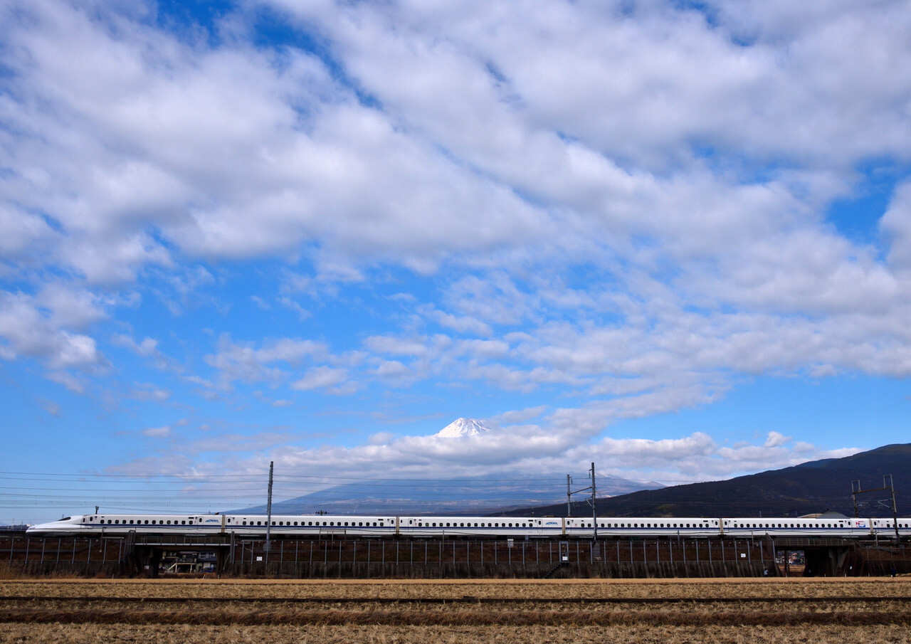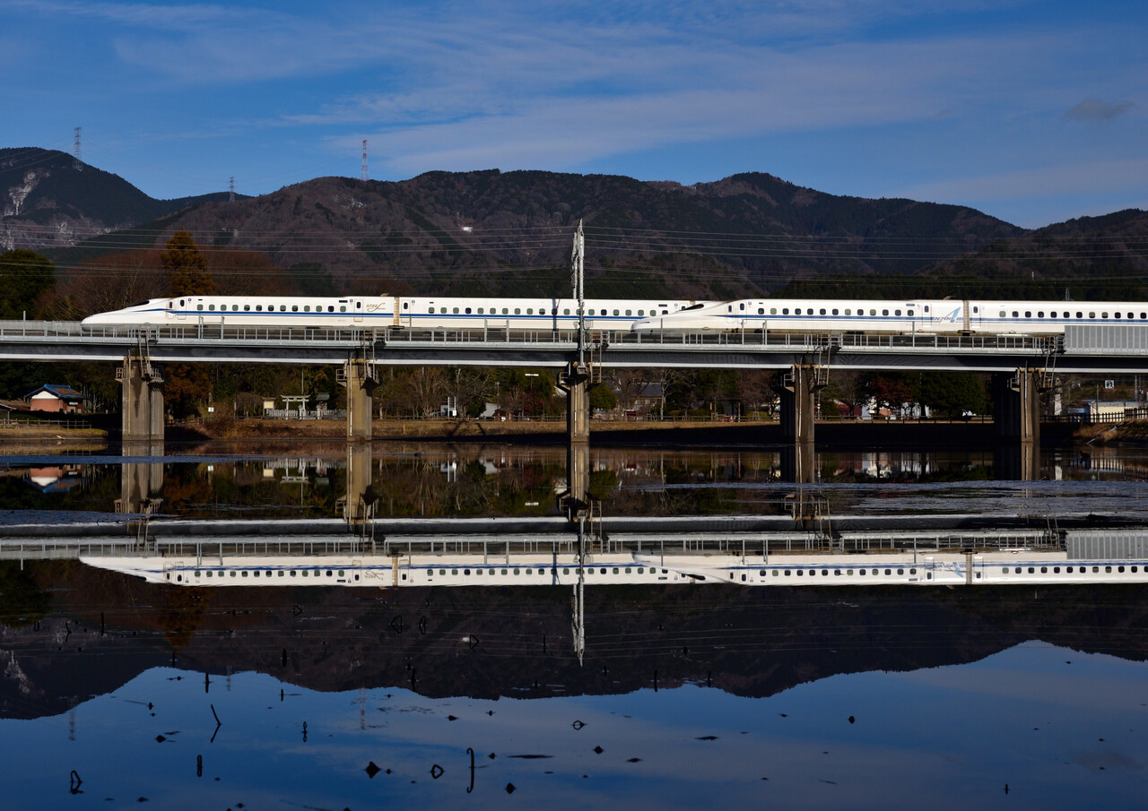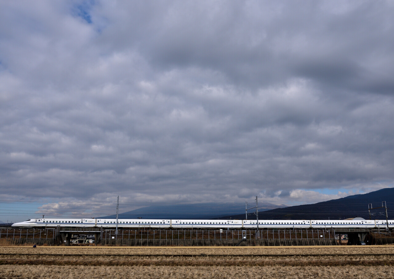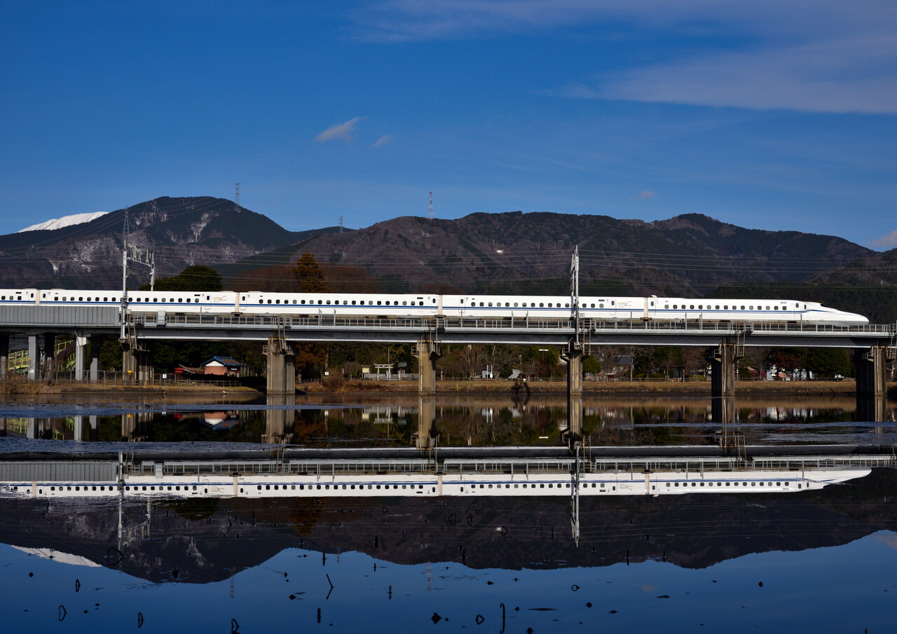 次のN700Sは少し引いて撮ってみました。僅かながら伊吹山の山頂も・・・。