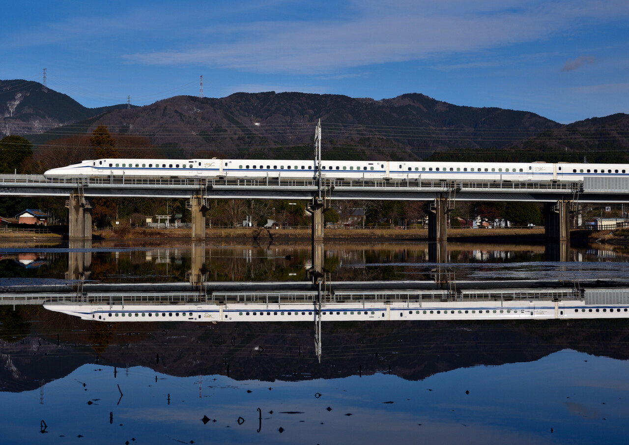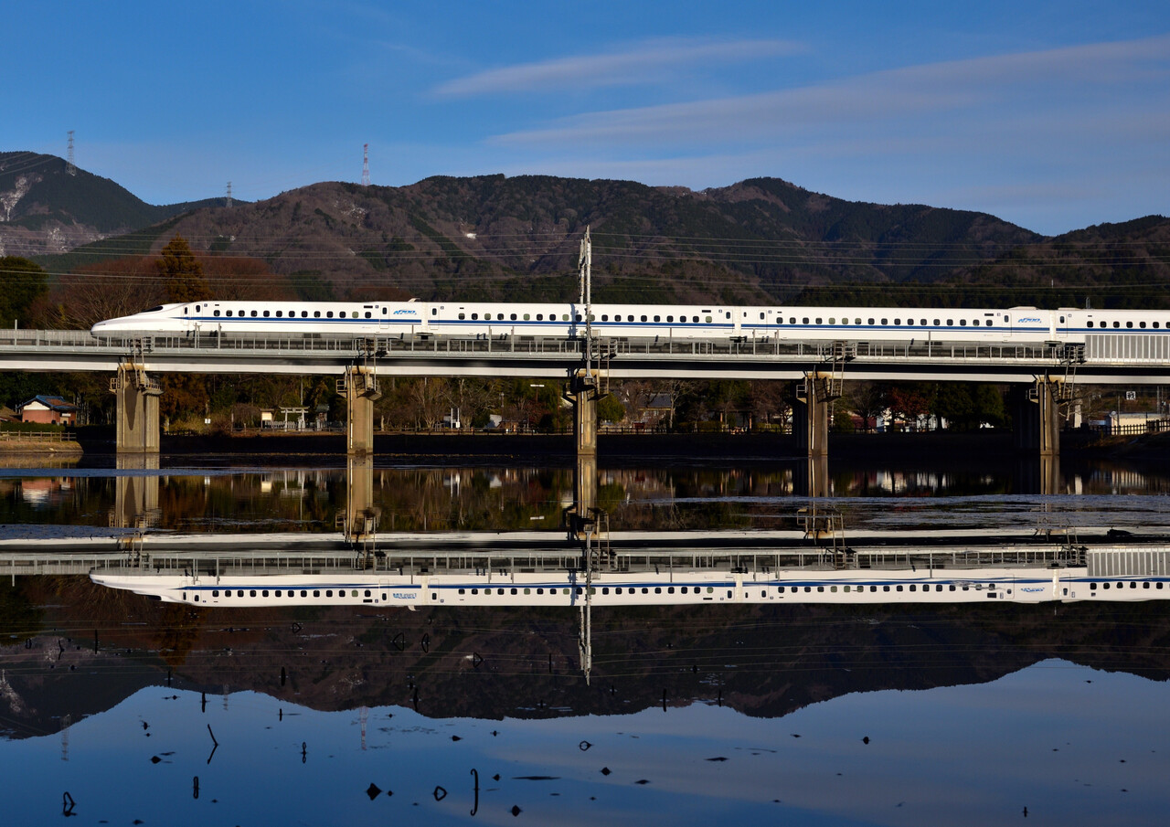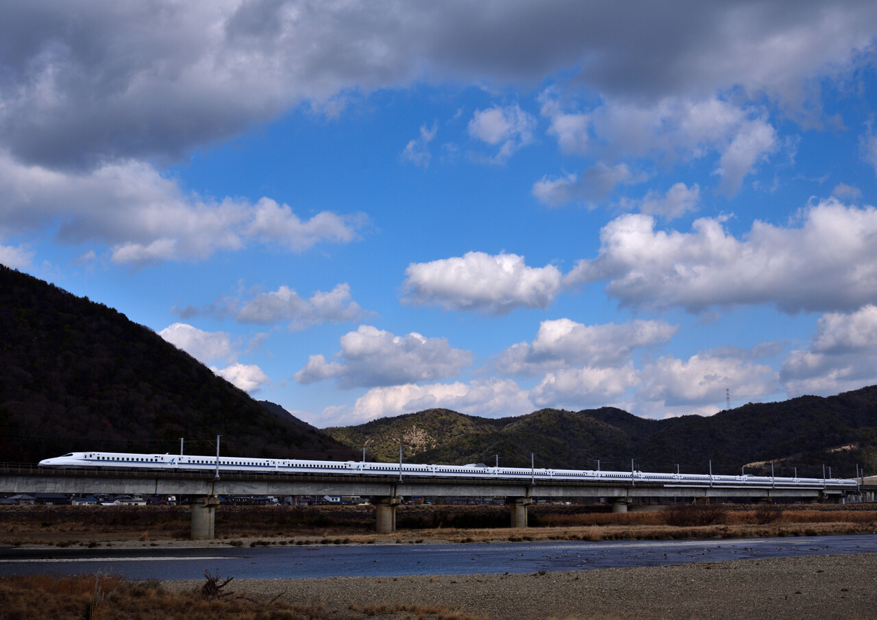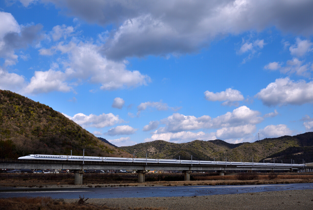 次のN700Sは少し引いて撮ってみました。僅かながら伊吹山の山頂も・・・。