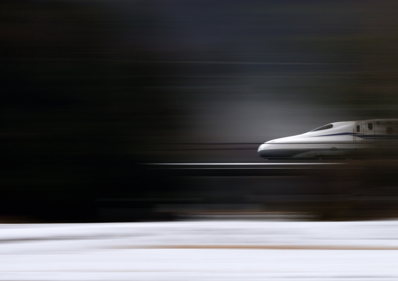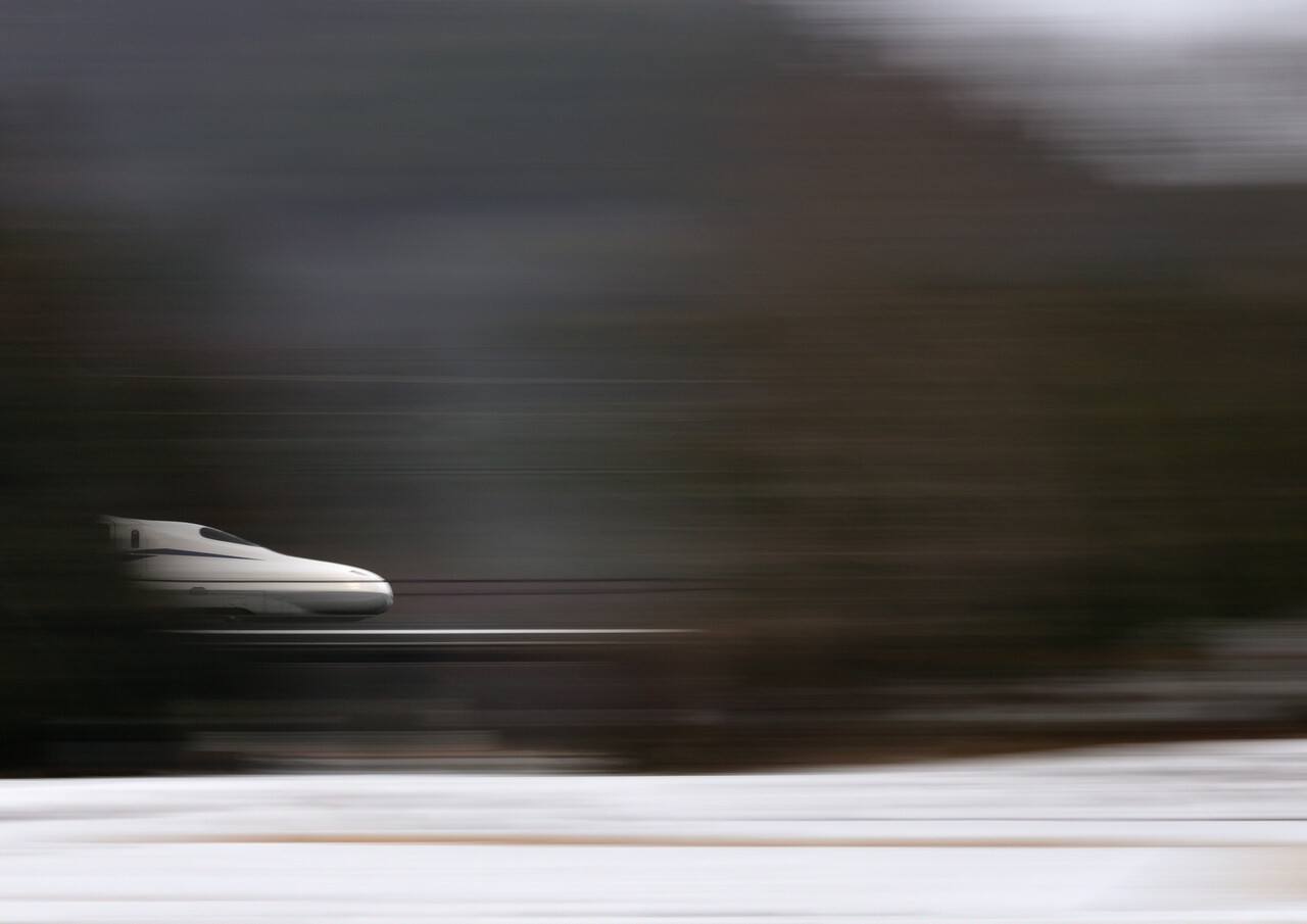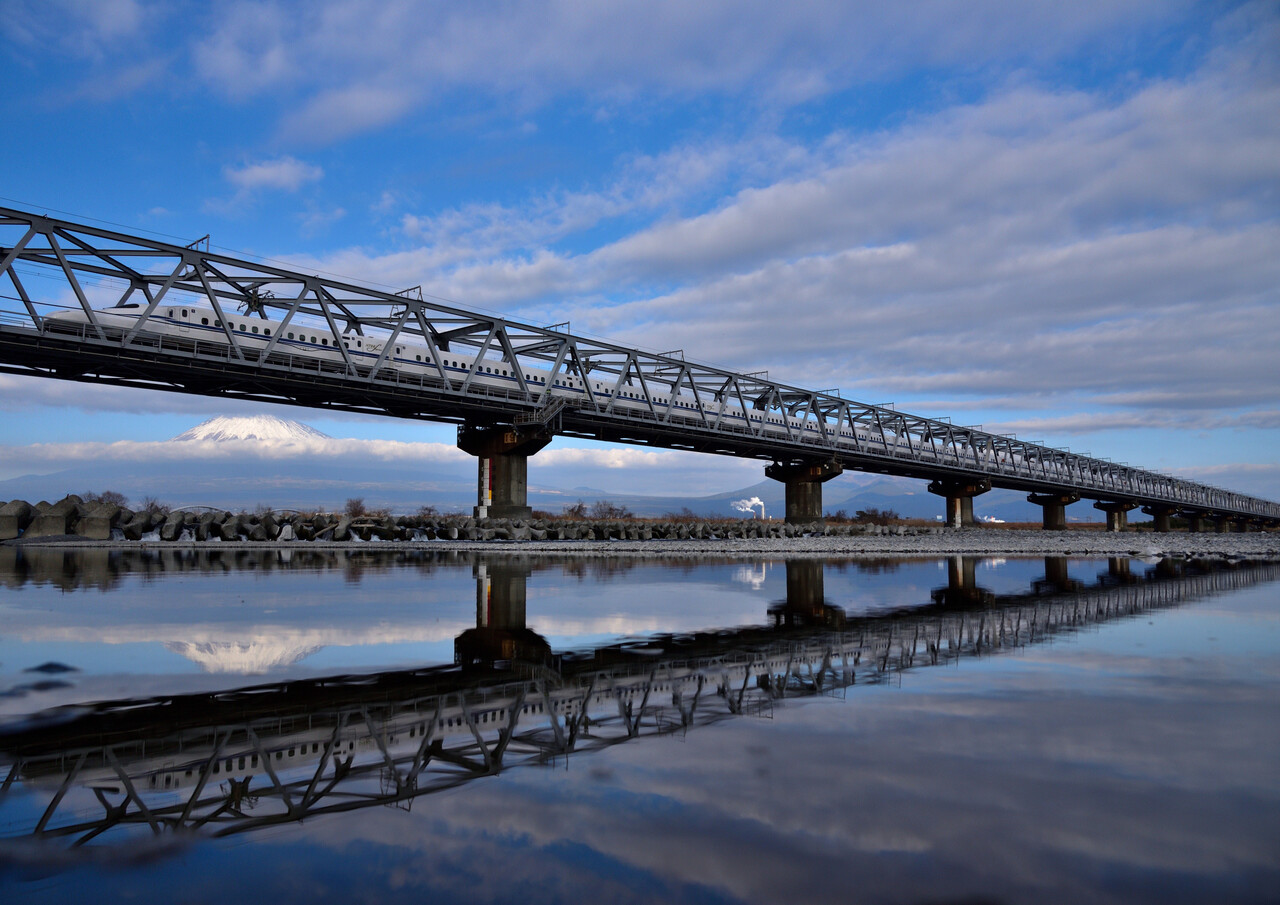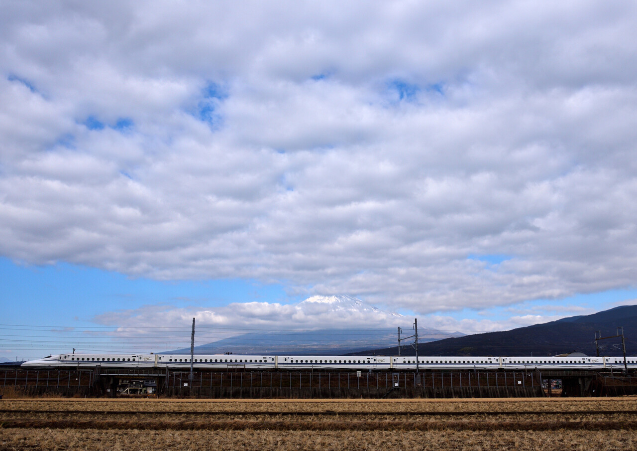 次のN700Sは少し引いて撮ってみました。僅かながら伊吹山の山頂も・・・。