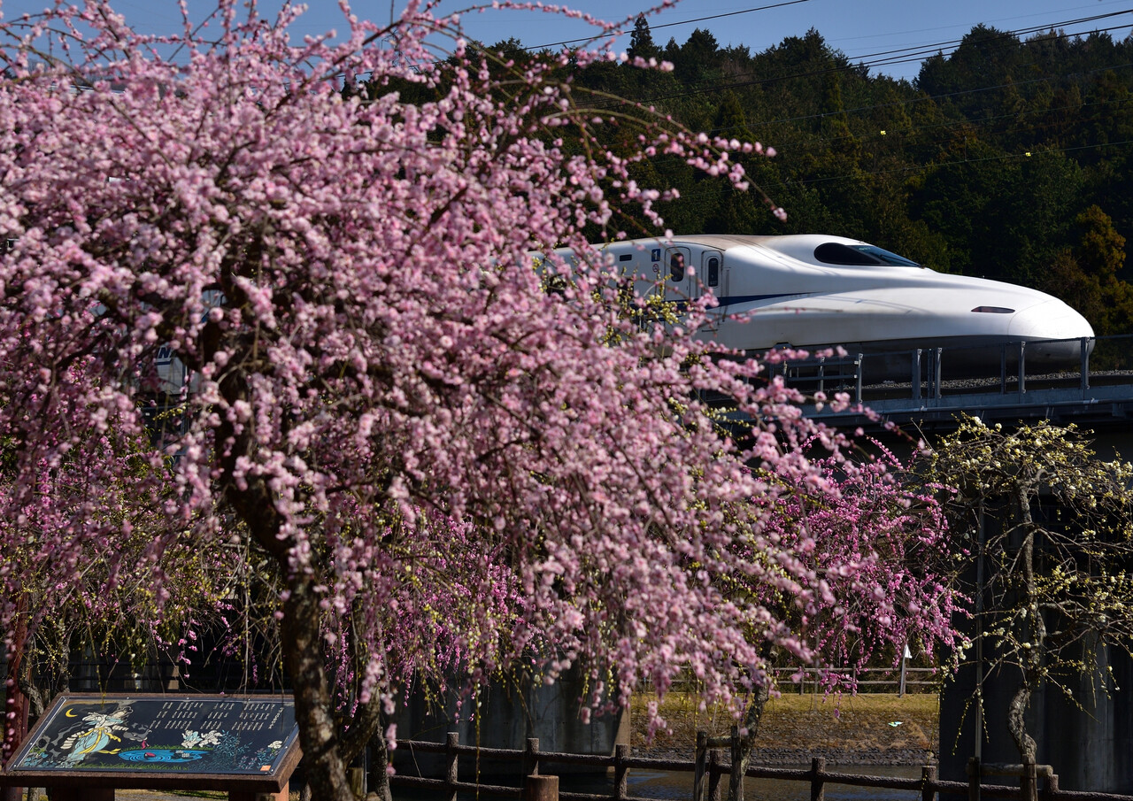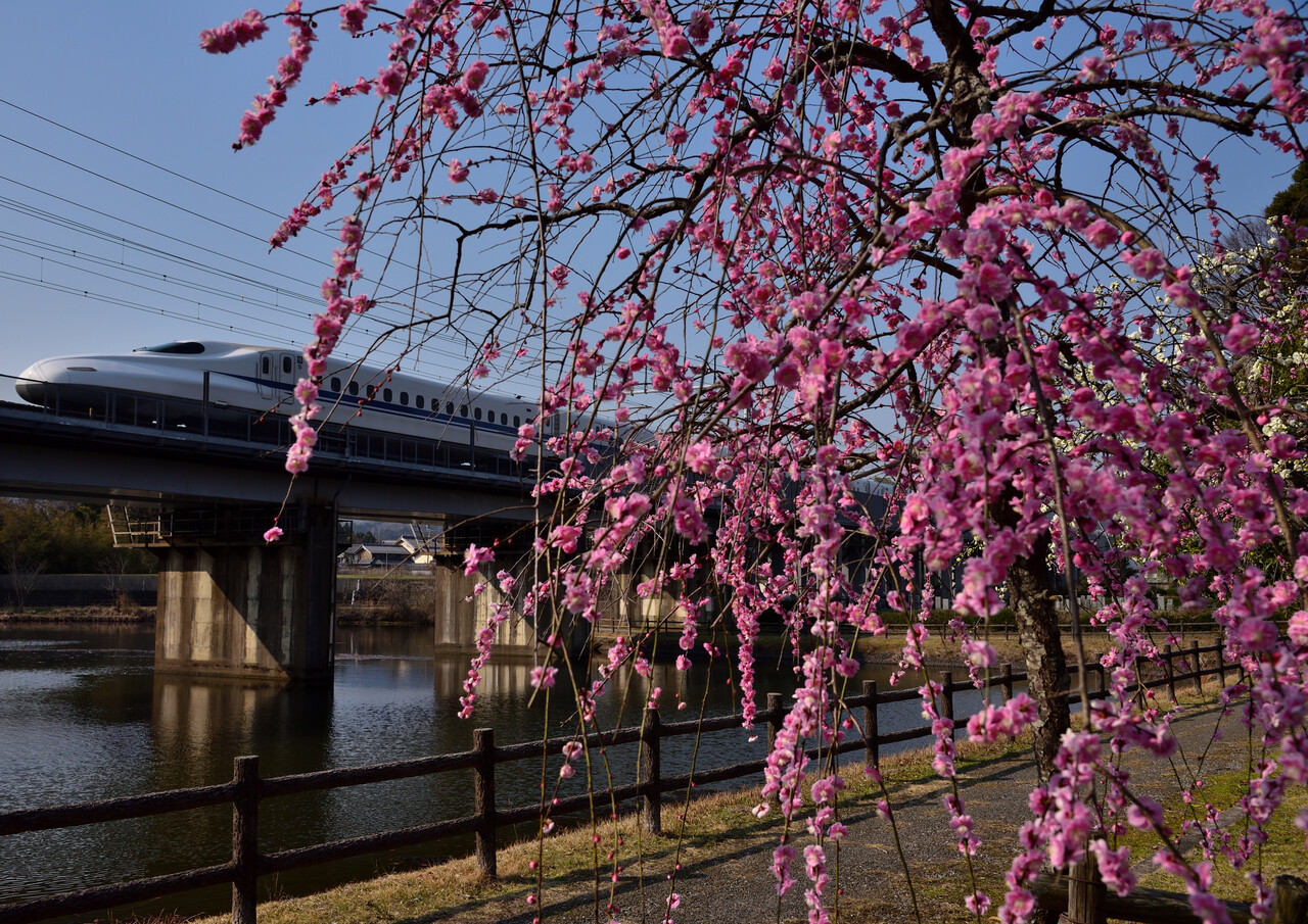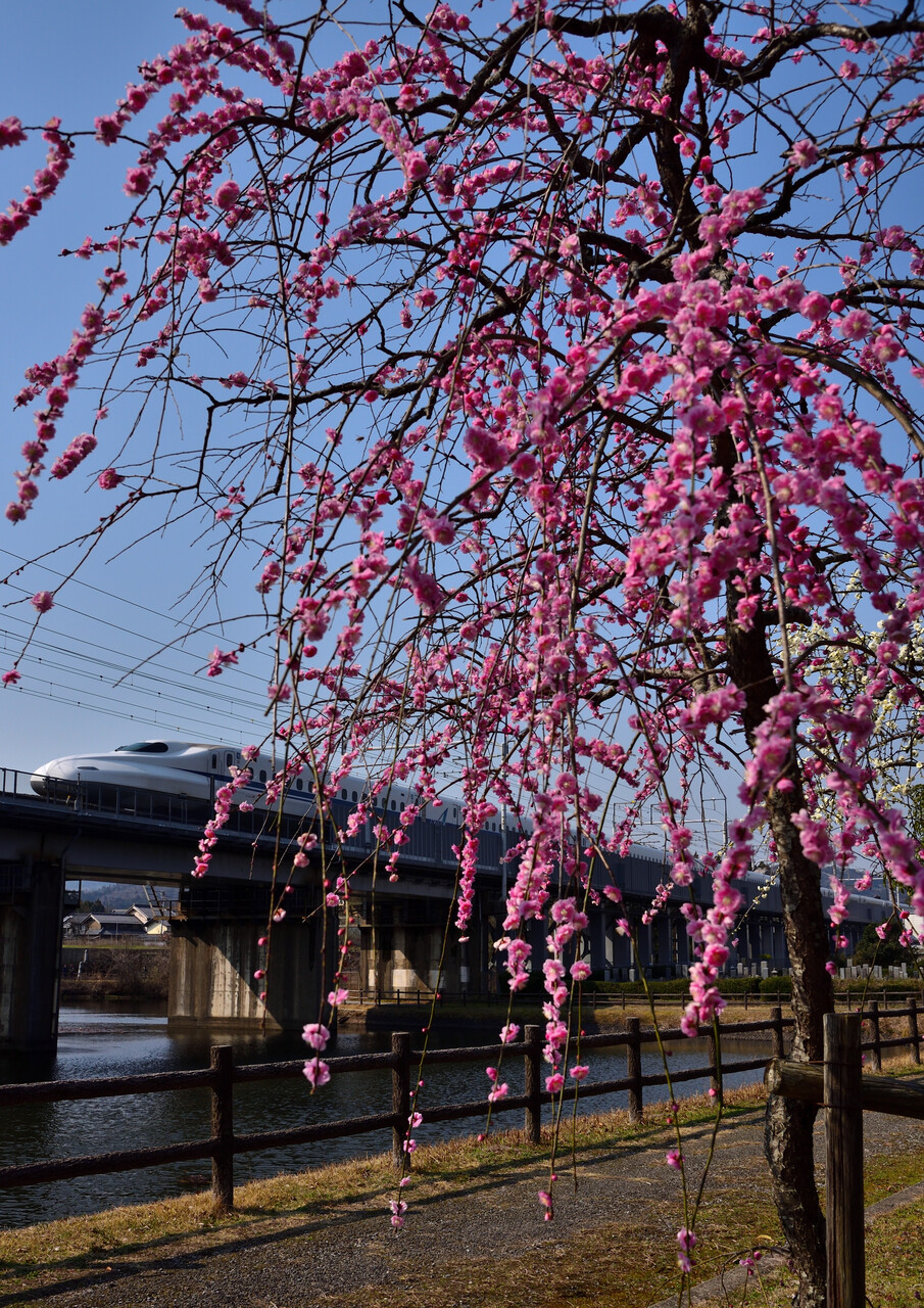 2025年03月23日 Wonderful Dreams Shinkansen:3/23① 先日撮った枝垂れ梅。ここ数日気温が一気に上がったのでそろそろ満開を迎えるのではと思い今日も暗いうちから向かってみました。3月23日 1/2000 f/5.6 -0.3補正 ISO-400 米原~岐阜羽島間3月23日 1/2000 f/5.6 -0.3補正 ISO-360 米原~岐阜羽島間あえて逆光で撮ってみました。脚立のてっぺんでの手持ちはなかなか難しかったのですが、何とか・・・。この後は誰も居られなくなったので、ゆっくり色々撮ることが出来ました。